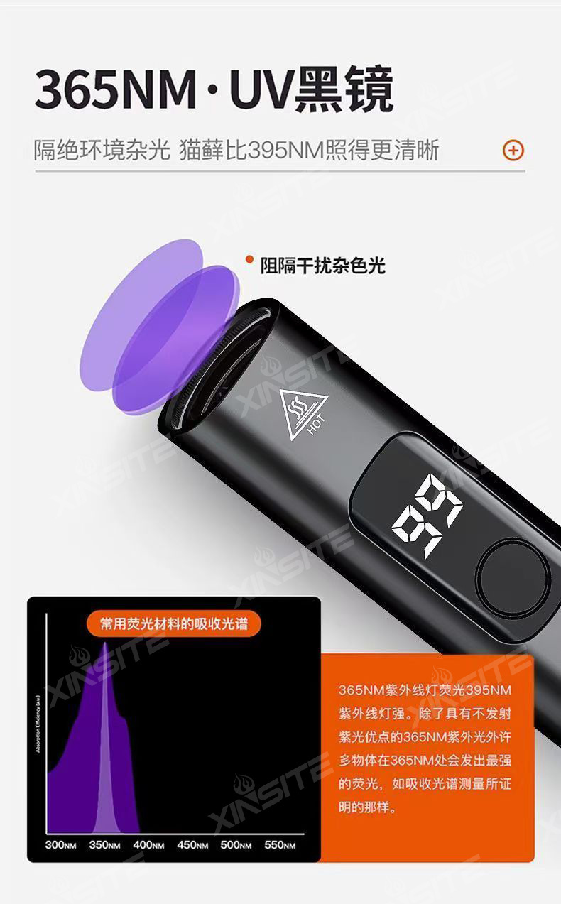 Detección de residuos de plaguicidas detección de hongos lámpara ultravioleta detección de linterna ultravioleta 365nm líquido de bordeaux recargable impermeable