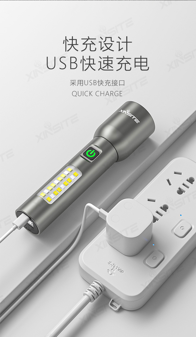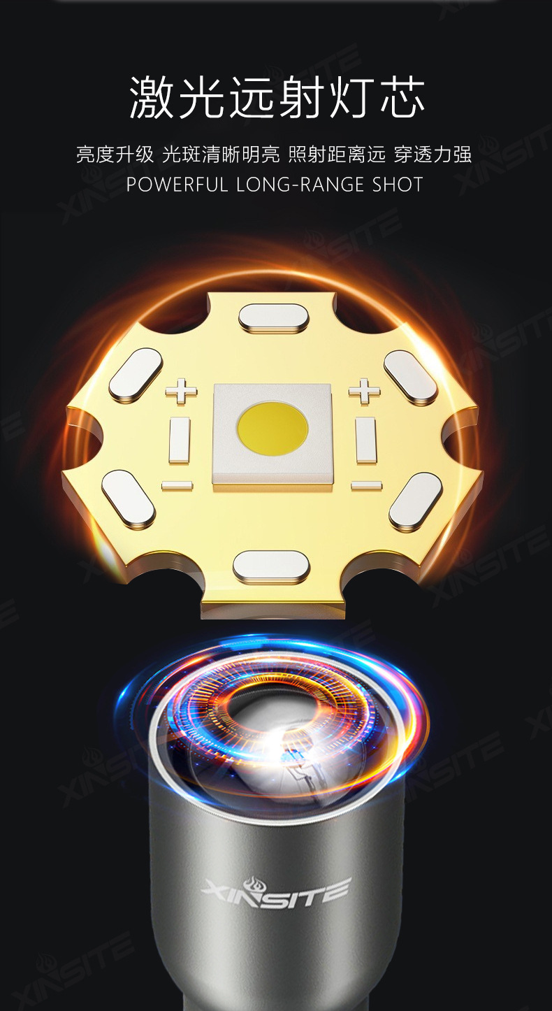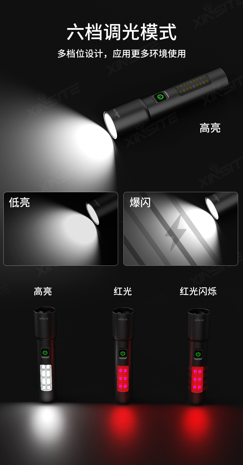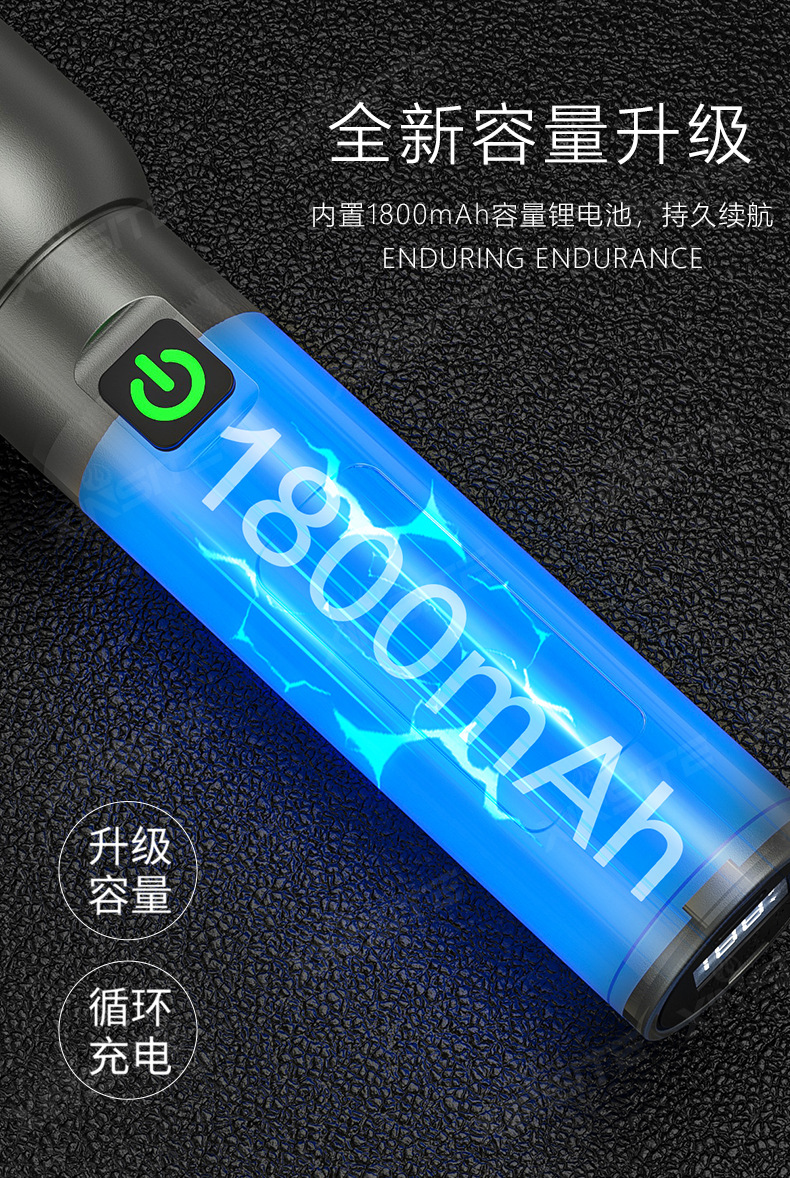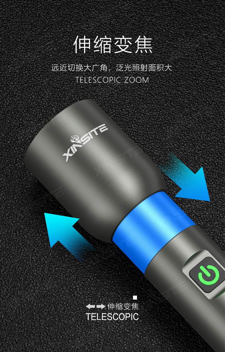 Lintera de aluminio brillante retráctil zoom multifuncional portátil recargable ultra brillante larga duración de la batería doméstica