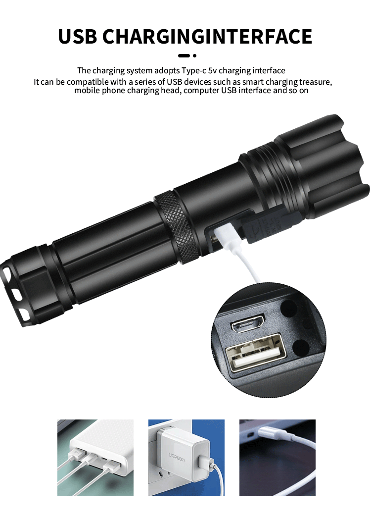 P50 transfronterizo de largo alcance linterna LED luz fuerte USB recargable portátil p70 linterna retráctil linterna al aire libre