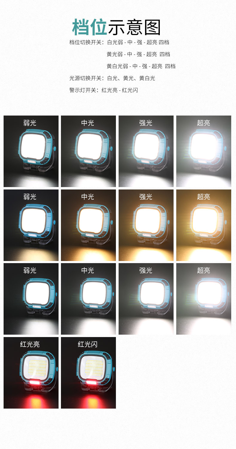 Nueva luz de trabajo multifuncional al aire libre que acampa luz de alto brillo larga resistencia con gancho imán lámpara de iluminación de emergencia