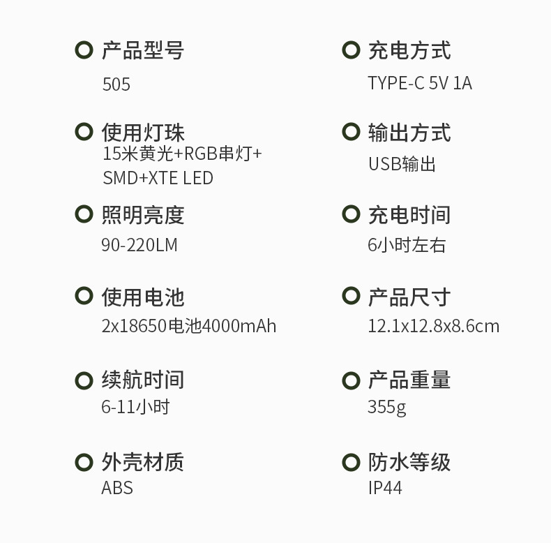 | Color | Lámpara de tienda 15m (calentado) 4000mah |