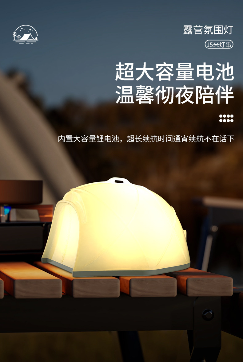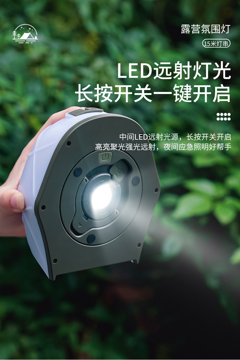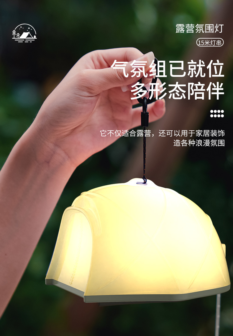 Transfronterizo nueva lámpara de tienda de campaña al aire libre lámpara de cinta de camping multifuncional 15 metros de largo cortina de luz de atmósfera estirada lámpara de cadena