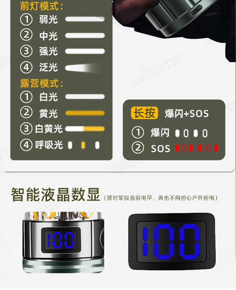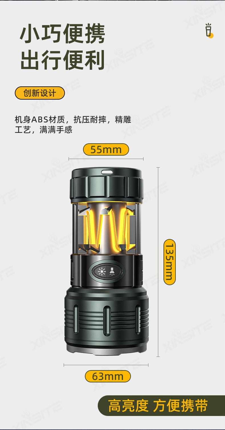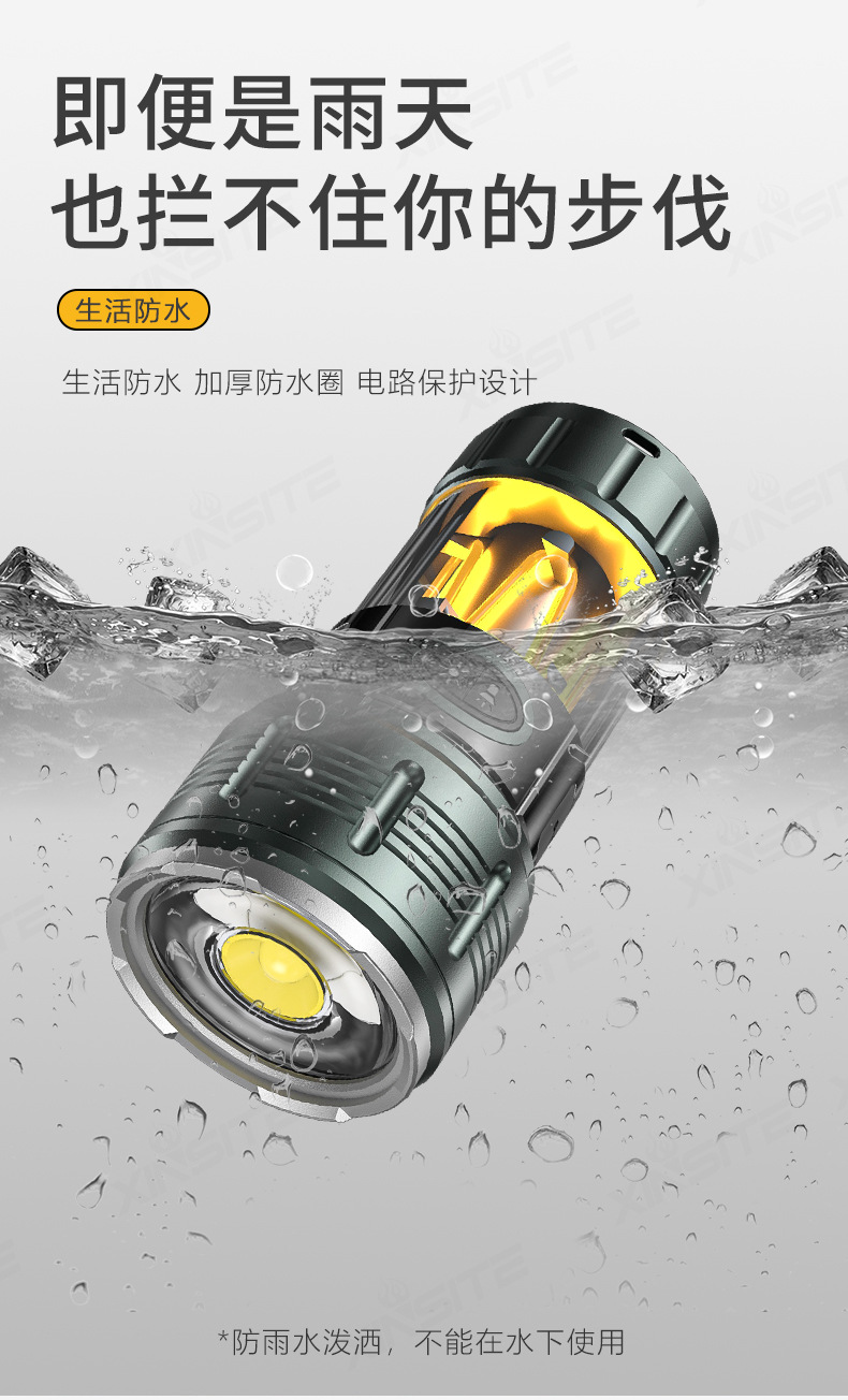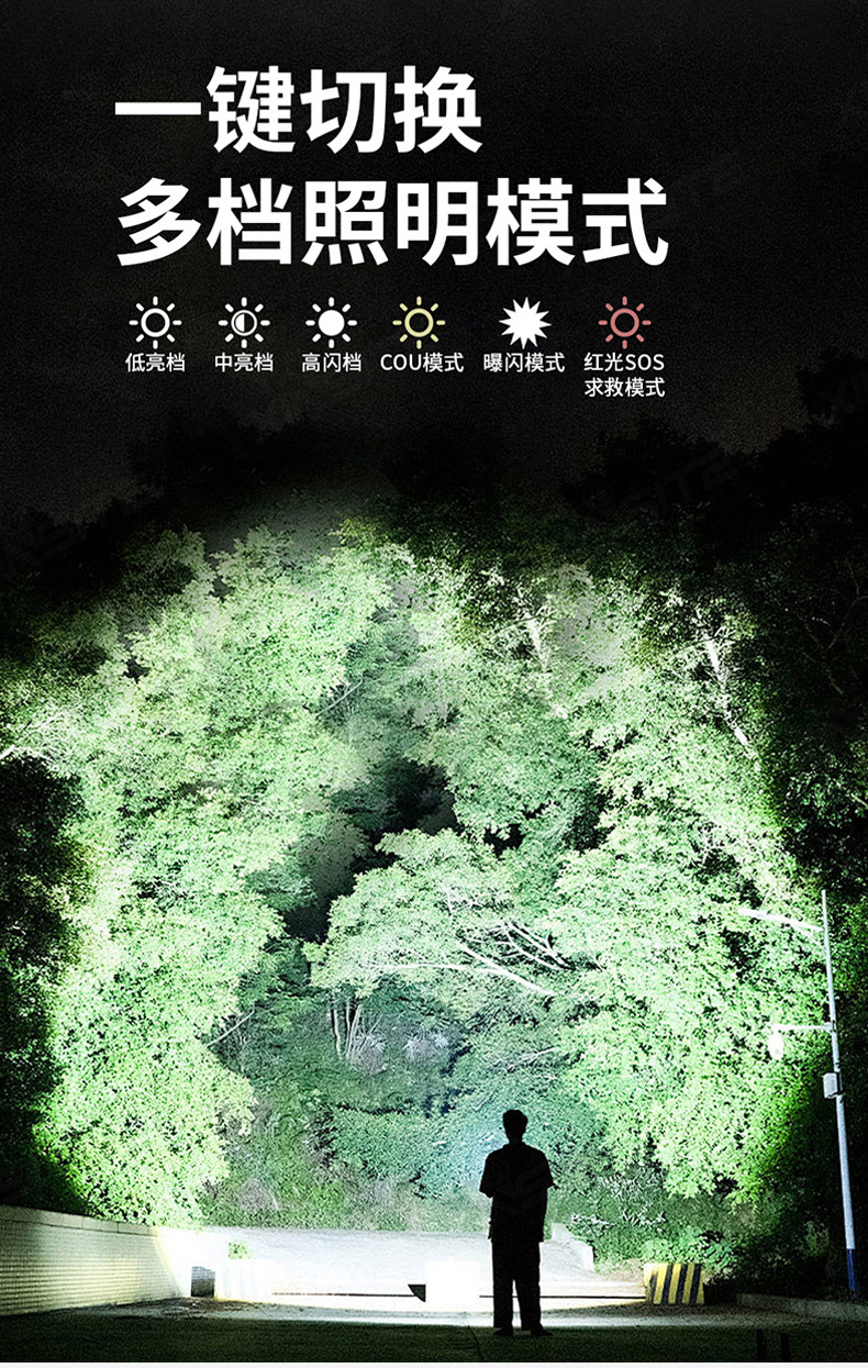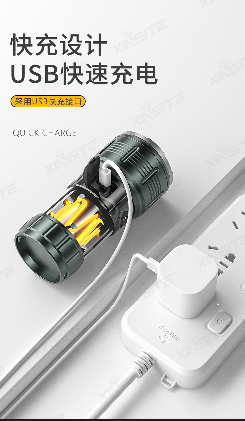 Nuevas linternas transfronterizas de alta luz al aire libre recargable portátil luz de búsqueda de pesca nocturna luz táctica de trabajo multifuncional