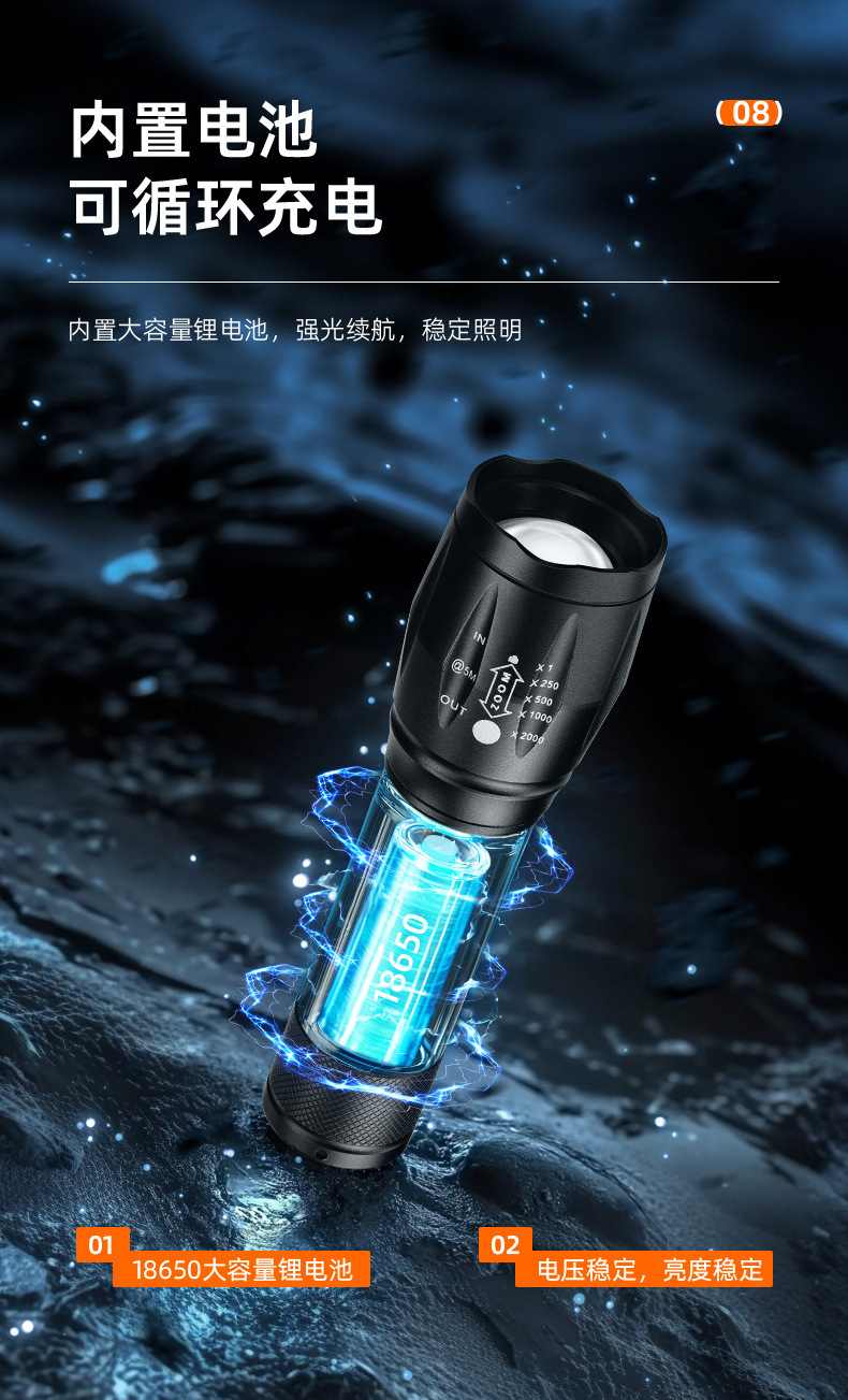 Linterna de luz brillante transfronteriza carga de usuario doméstico brillante mini linterna portátil multifuncional láser nocturno paseo