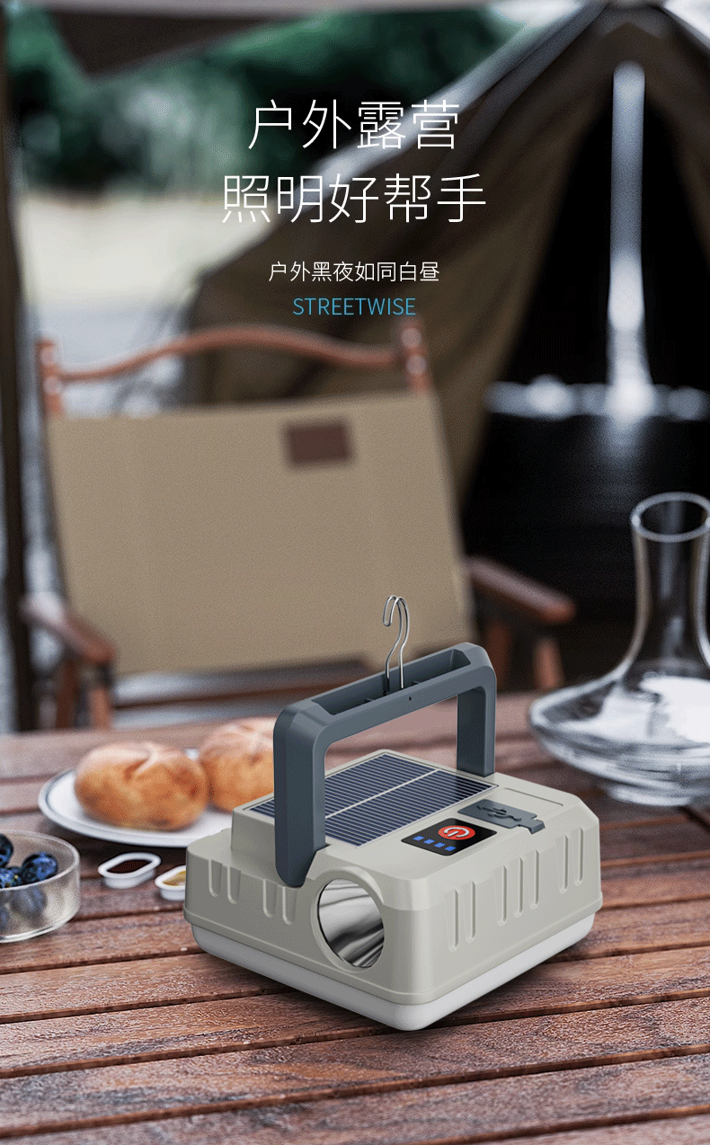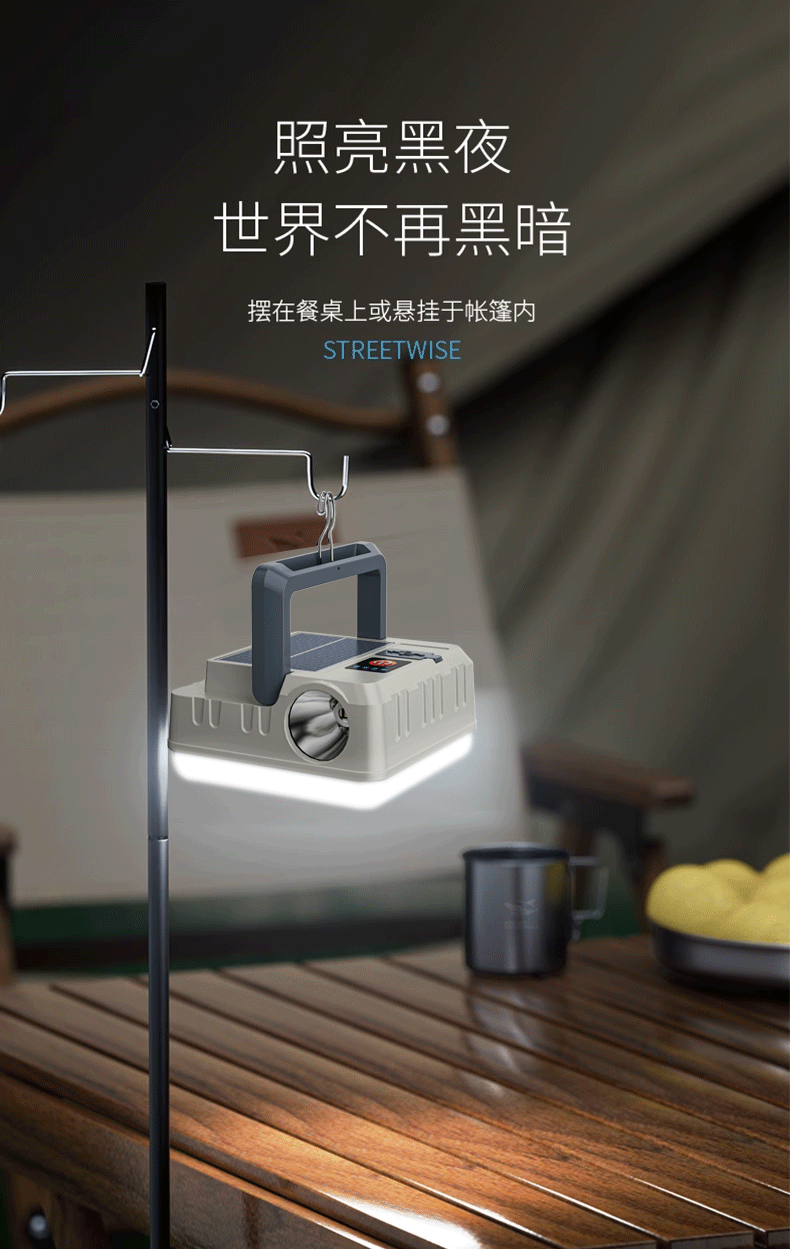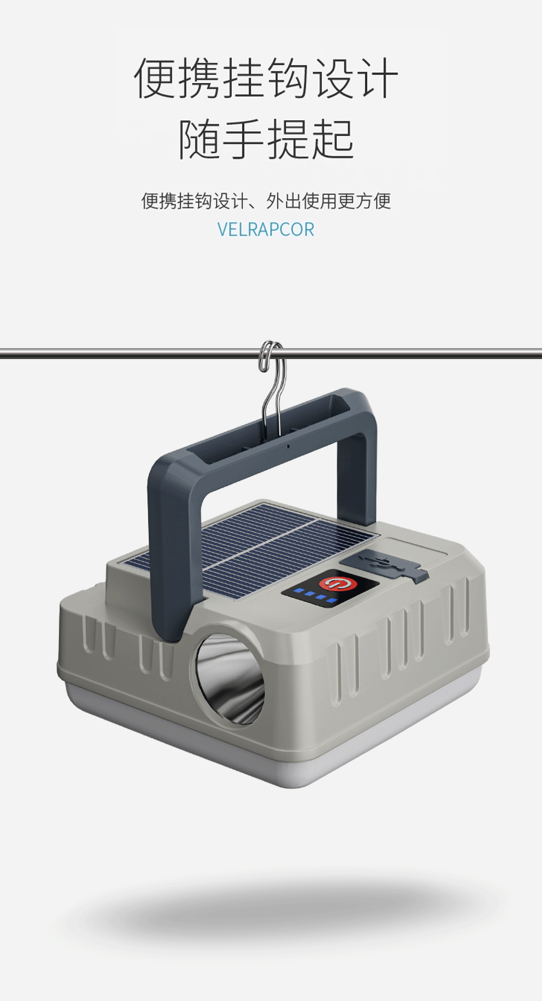 Transfronteriza nueva lámpara portátil solar multifuncional impermeable lámpara de camping gancho portátil lámpara de camping lámpara al aire libre
