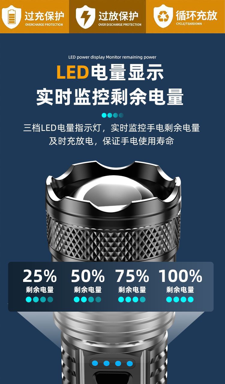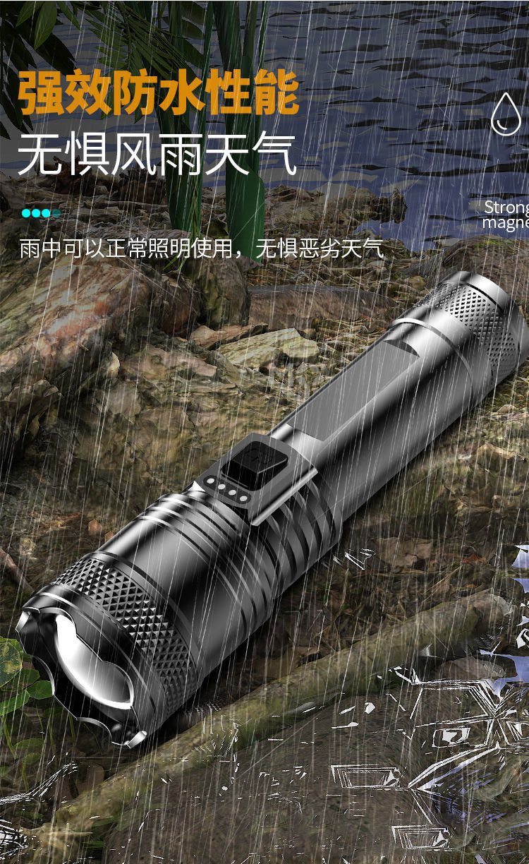 Tiktok caliente Super brillante luz fuerte linterna recargable zoom largo-Tiro Super larga resistencia al aire libre emergencia Luz de largo alcance