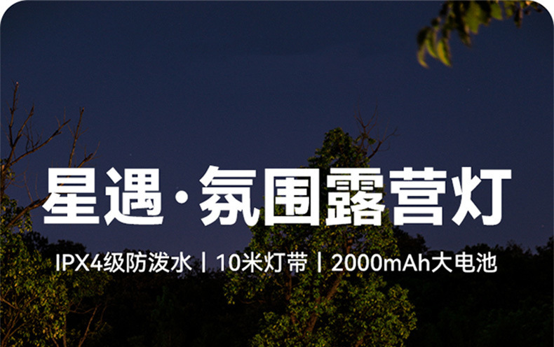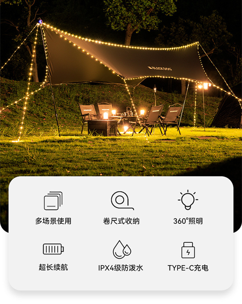 Luces para acampar al aire libre, luces de ambiente de carpa con decoración, cinta métrica led de larga duración, almacenamiento de luces de interior