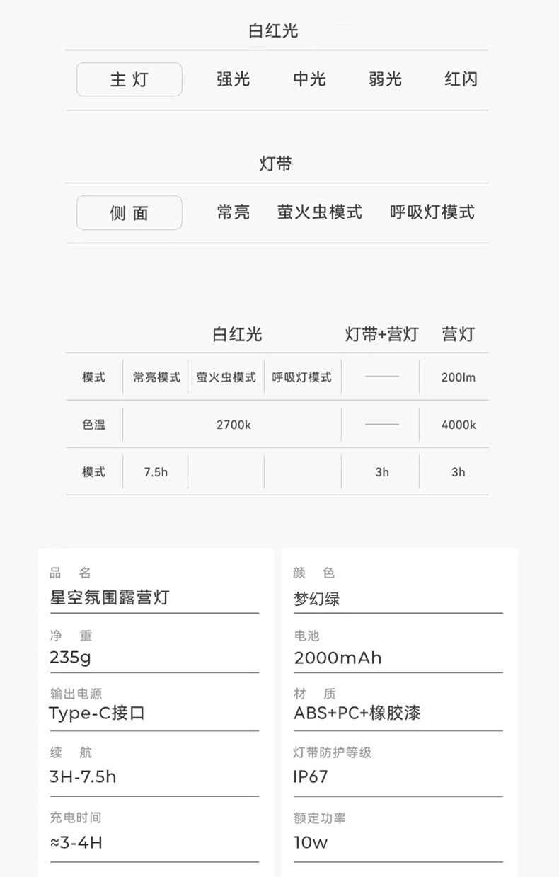 | Colores | Té verde militar (10 metros de luz cálida 2000mah) |