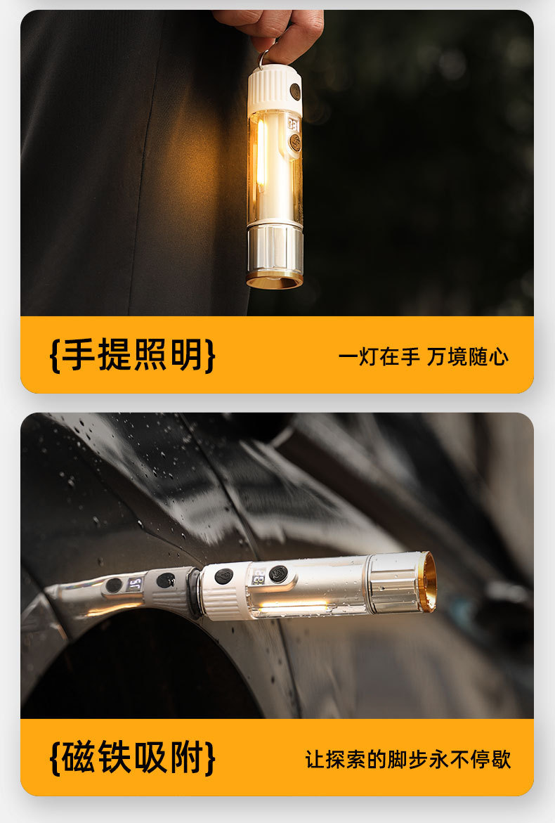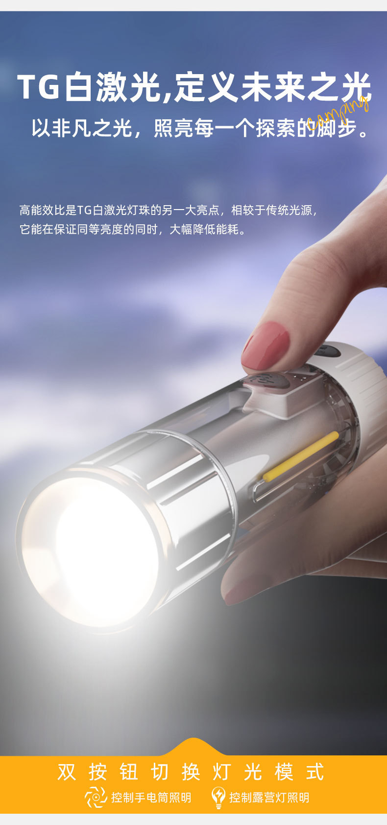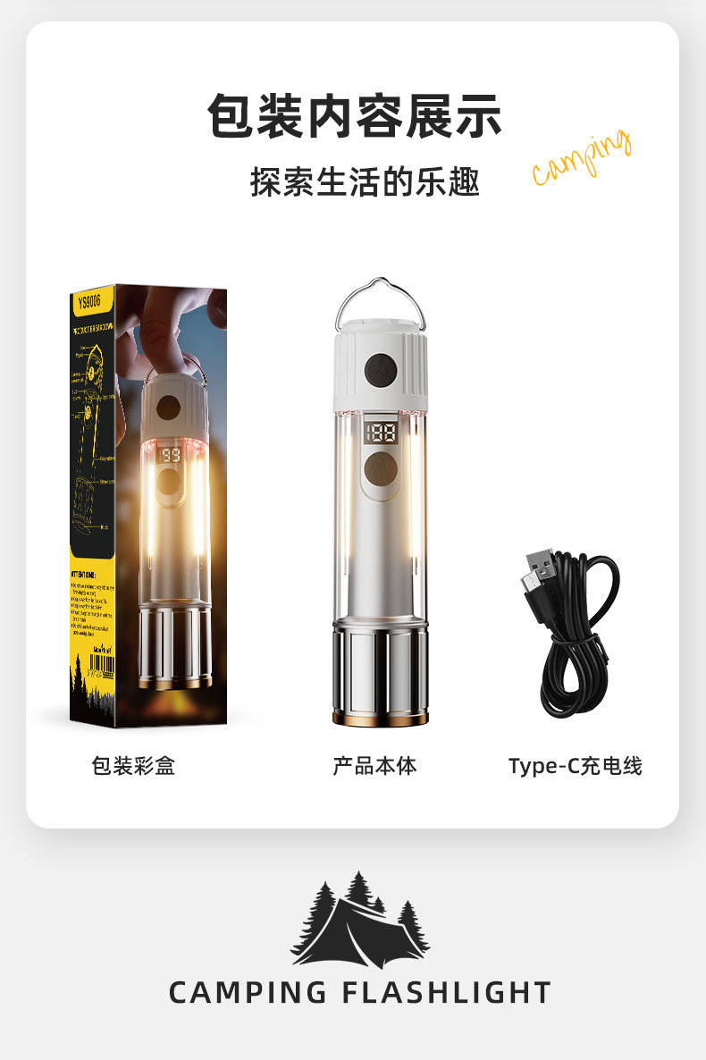 Nueva linterna de luz fuerte carga larga duración doble fuente de luz al aire libre alta luz portátil linterna de campamento doméstica