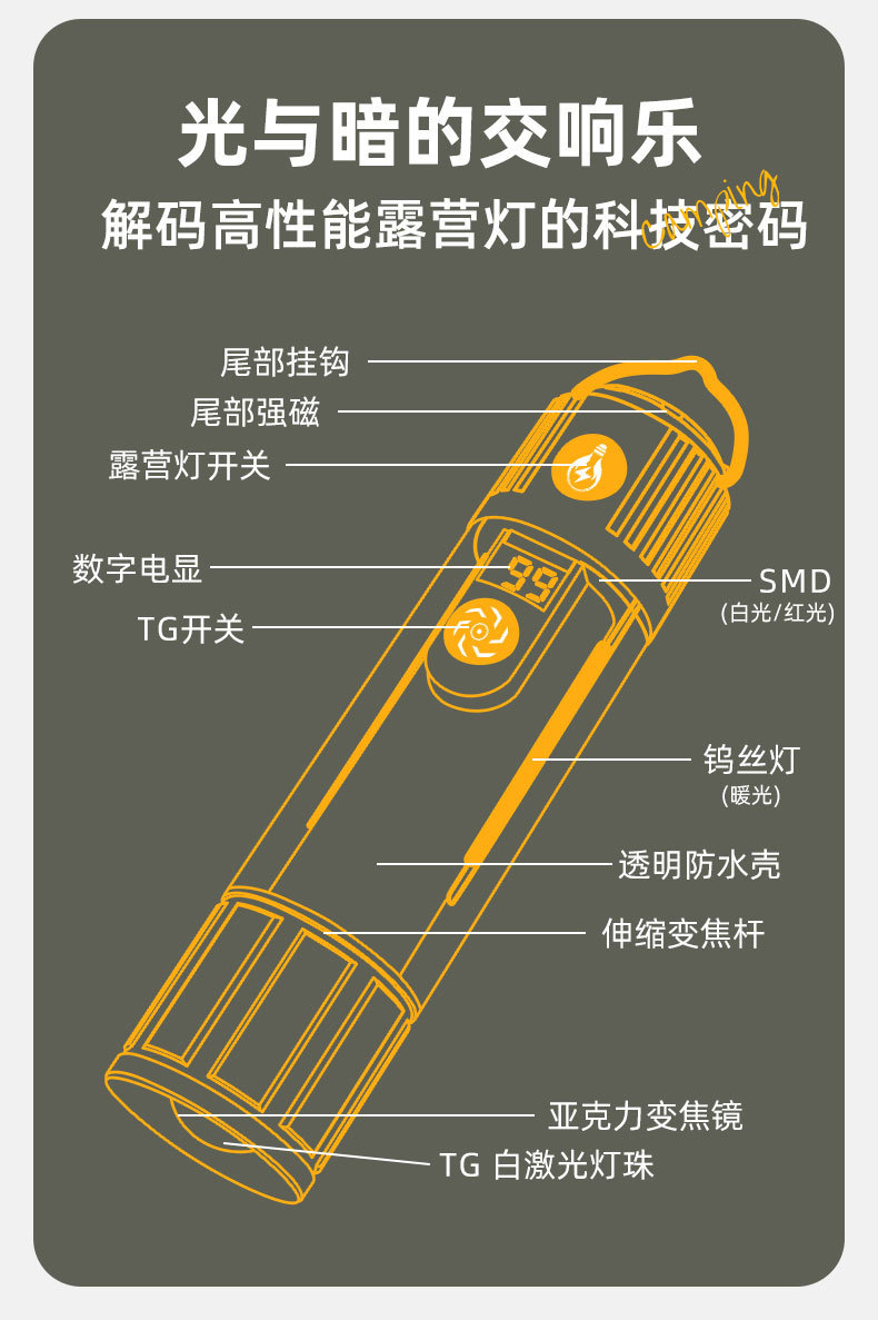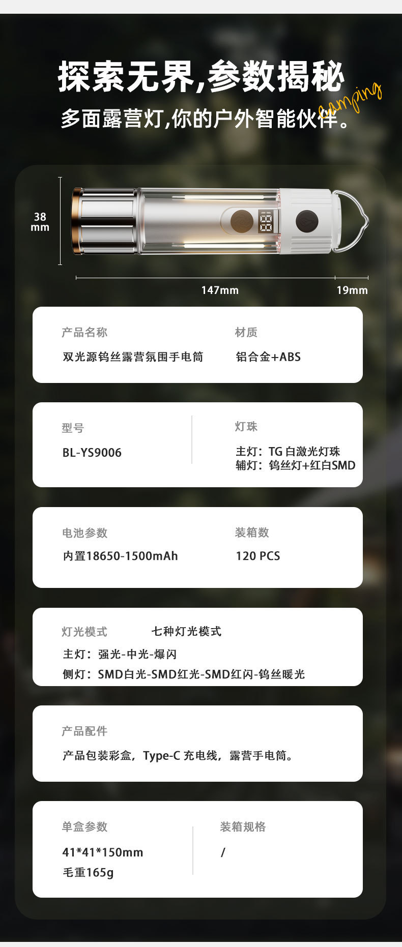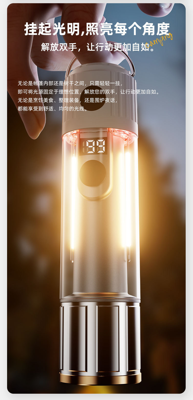 Nueva linterna de luz fuerte carga larga duración doble fuente de luz al aire libre alta luz portátil linterna de campamento doméstica