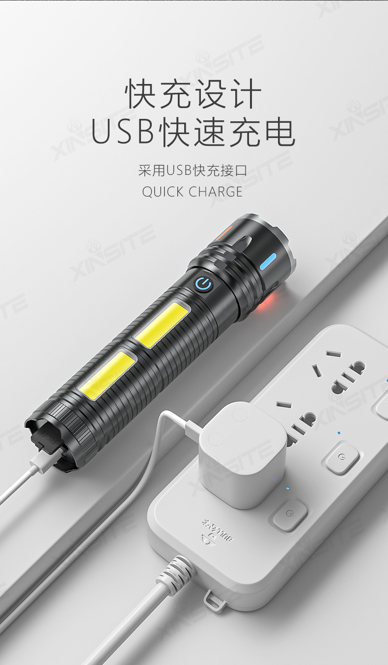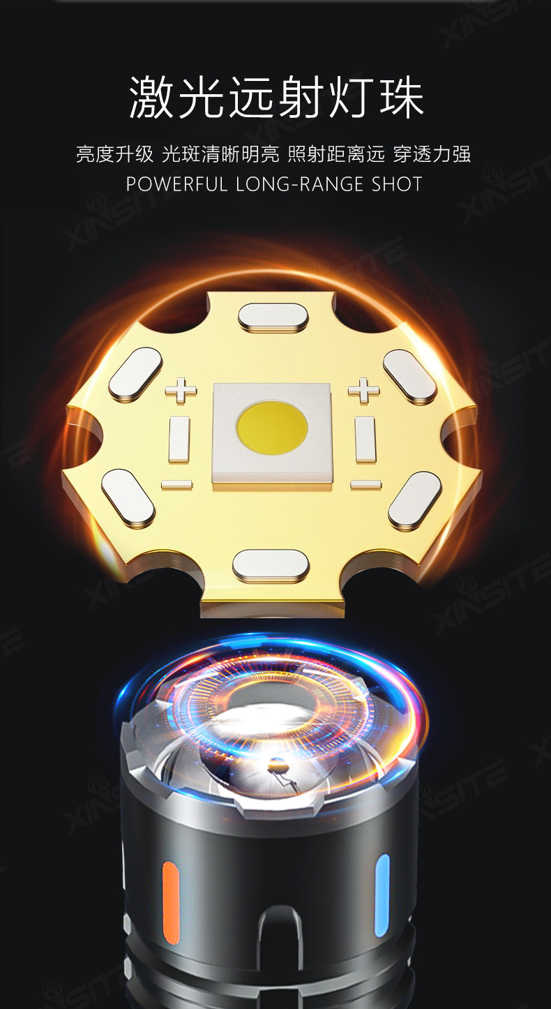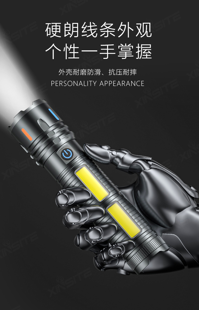 Linterna al aire libre transfronteriza luz alta luz alta luz larga batería recargable pequeña lámpara eléctrica antorcha doméstica
