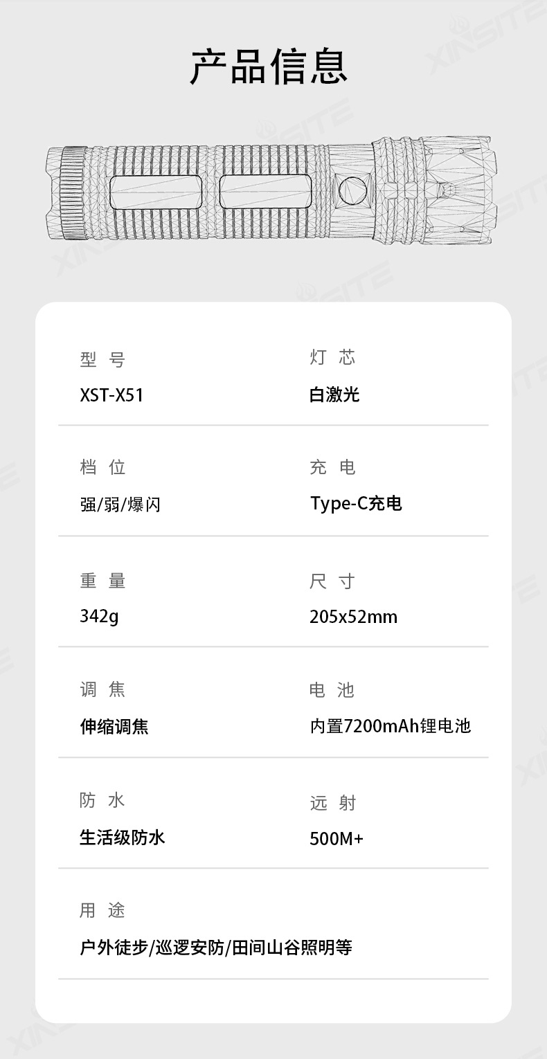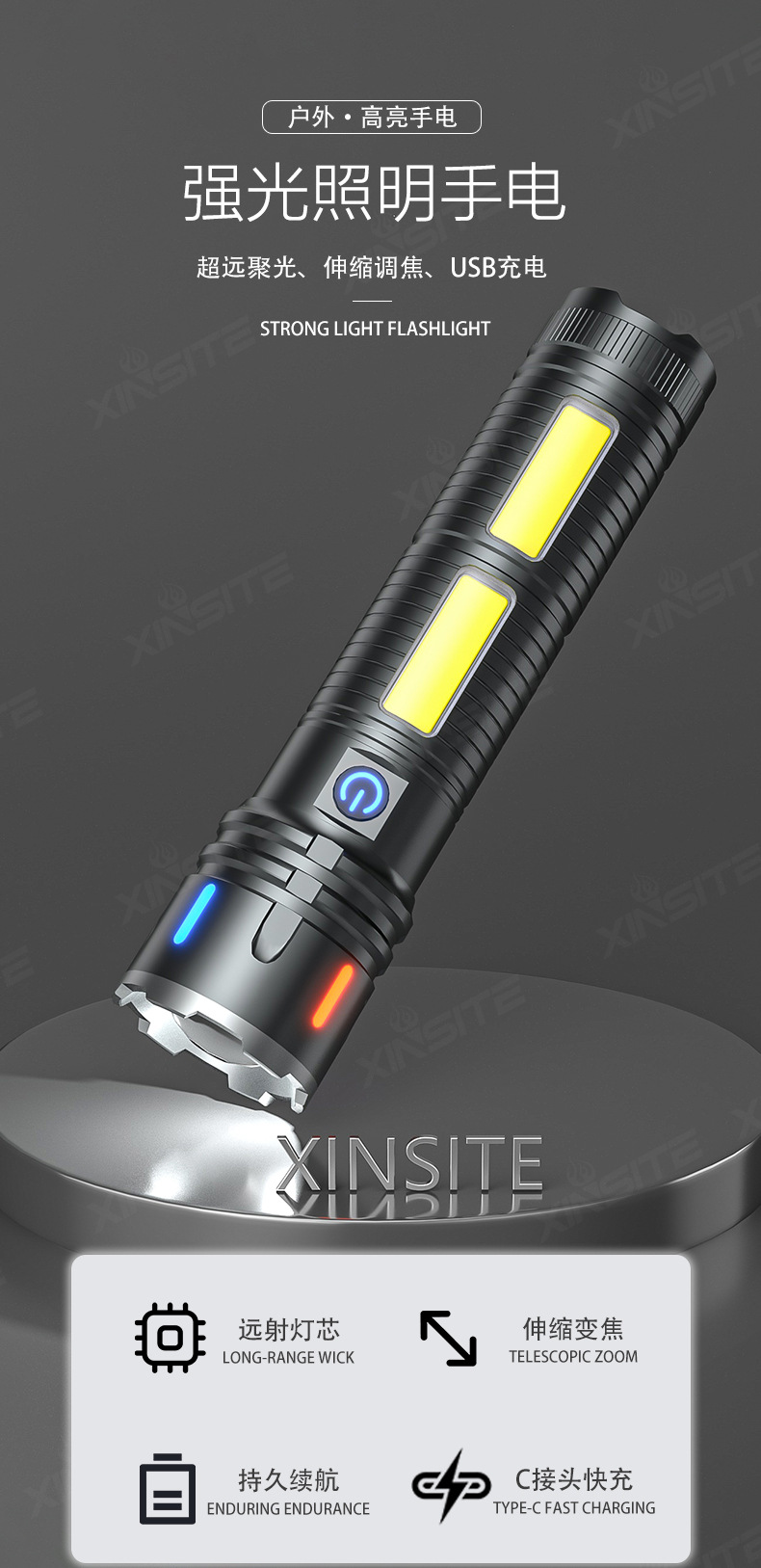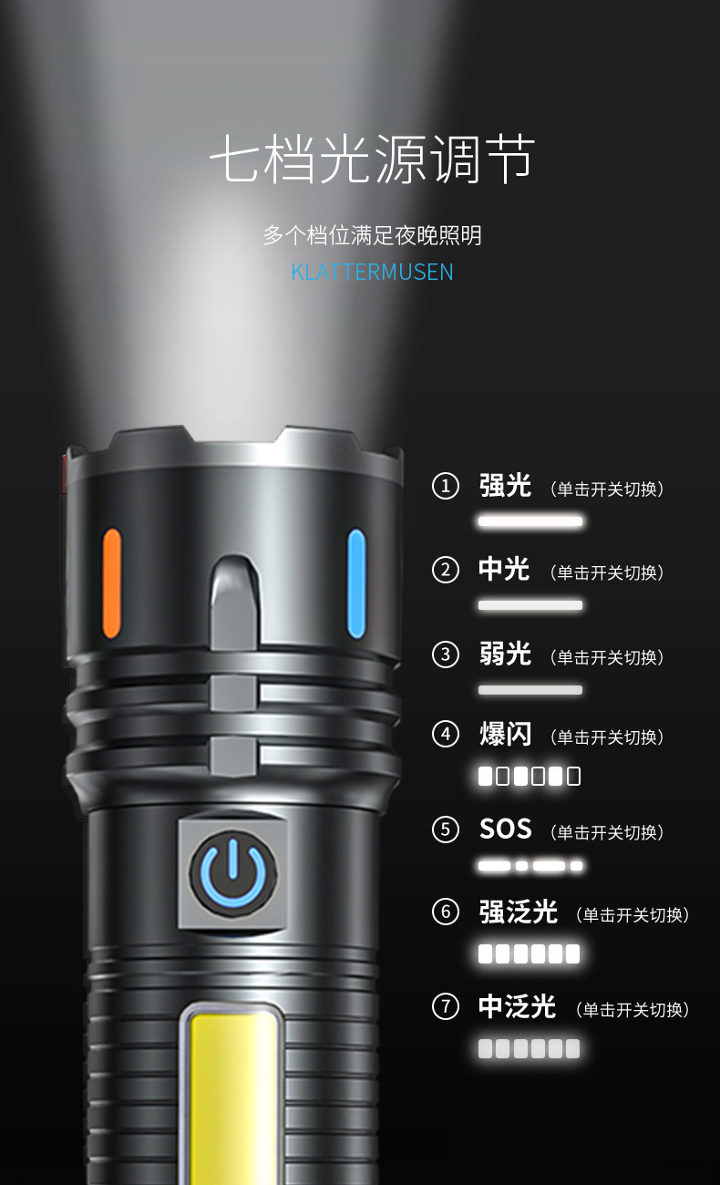 Linterna al aire libre transfronteriza luz alta luz alta luz larga batería recargable pequeña lámpara eléctrica antorcha doméstica