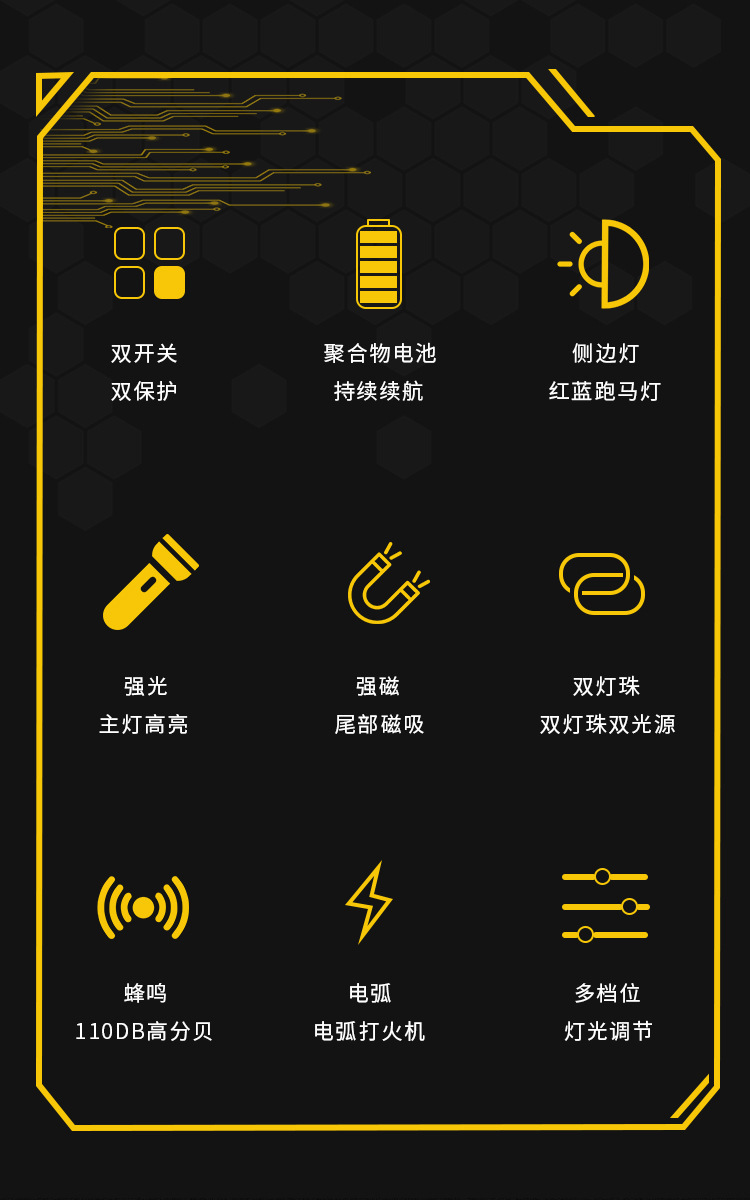 Nuevo encendedor de linterna multifuncional transfronterizo a prueba de viento encendedor de cigarrillos de arco doble con iluminación LED luz de emergencia