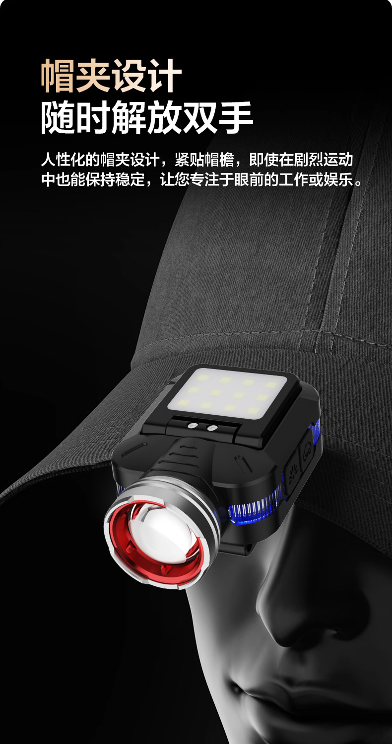 Transfronterizos nuevos faro al aire libre portátil multifuncional sombrero lámpara de motocicleta impermeable lámpara de advertencia campamento lámpara de trabajo de emergencia