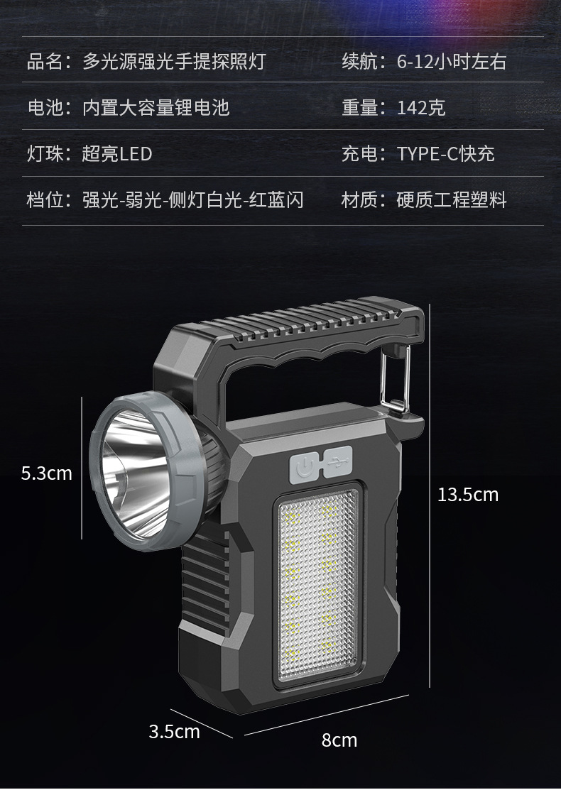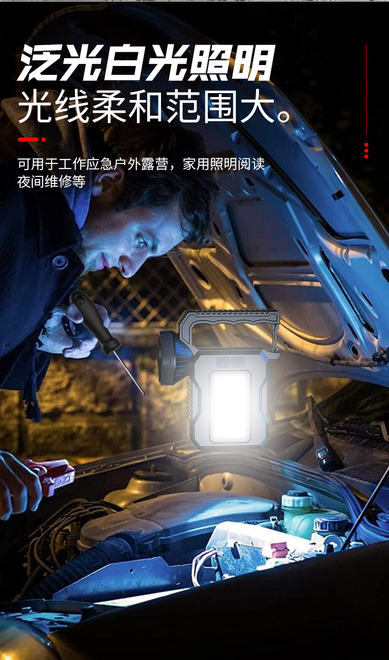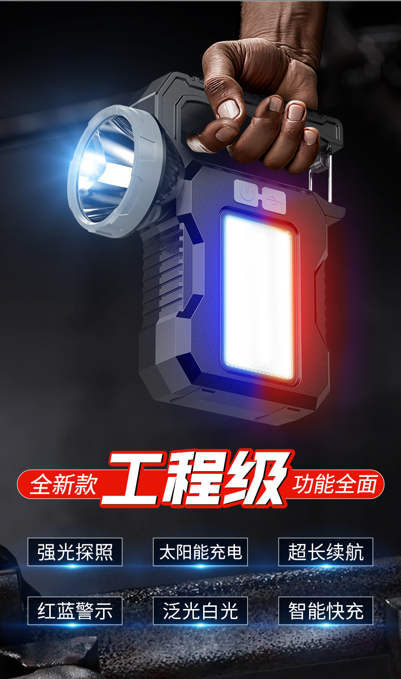 Transfronterizos nueva lámpara de mano al aire libre lámpara de trabajo multifuncional larga duración de la batería de carga de emergencia tesoro antorcha resaltada a prueba de agua