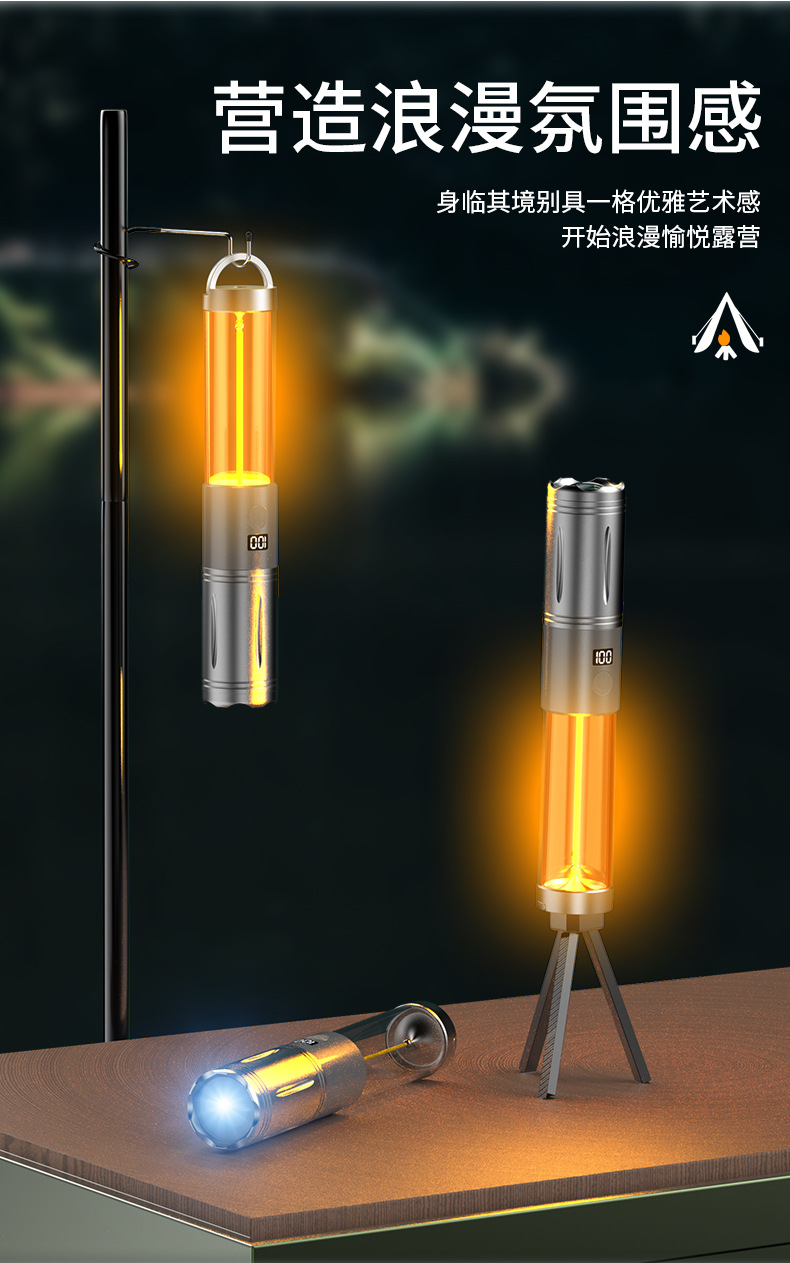 Linterna al aire libre transfronteriza multifuncional enfoque iluminación larga duración campamento atmósfera lámpara camping linterna impermeable