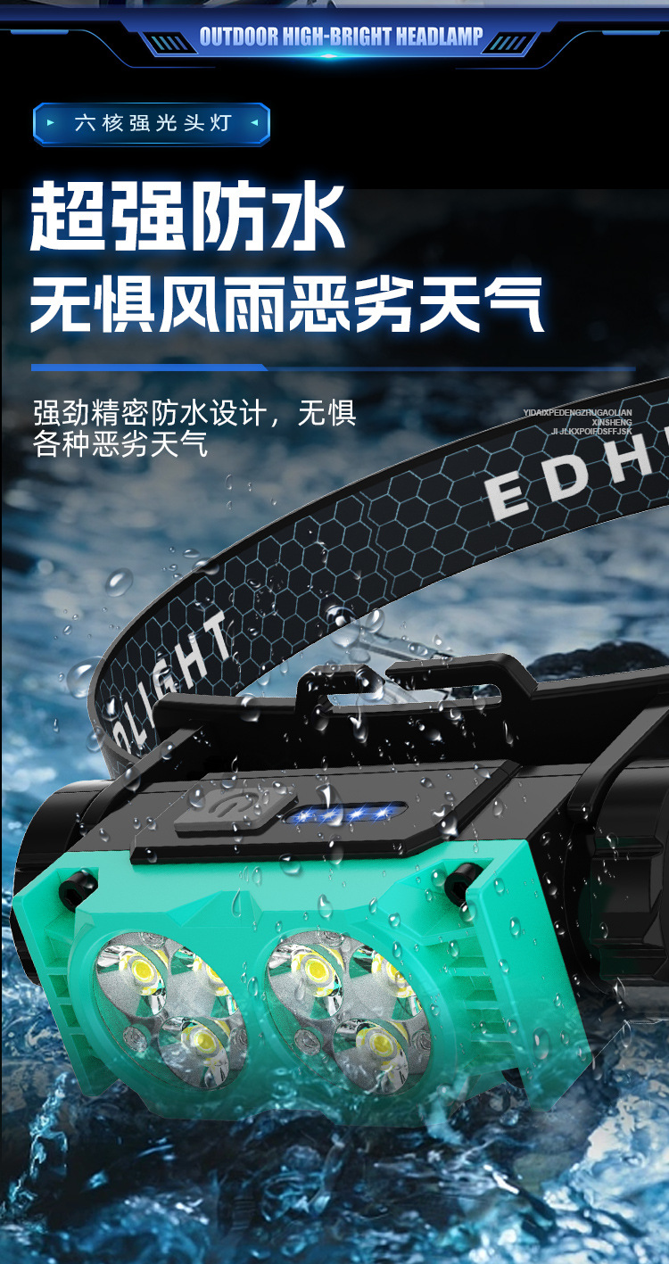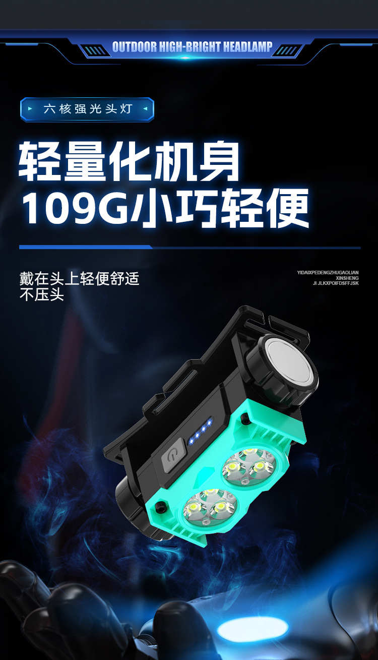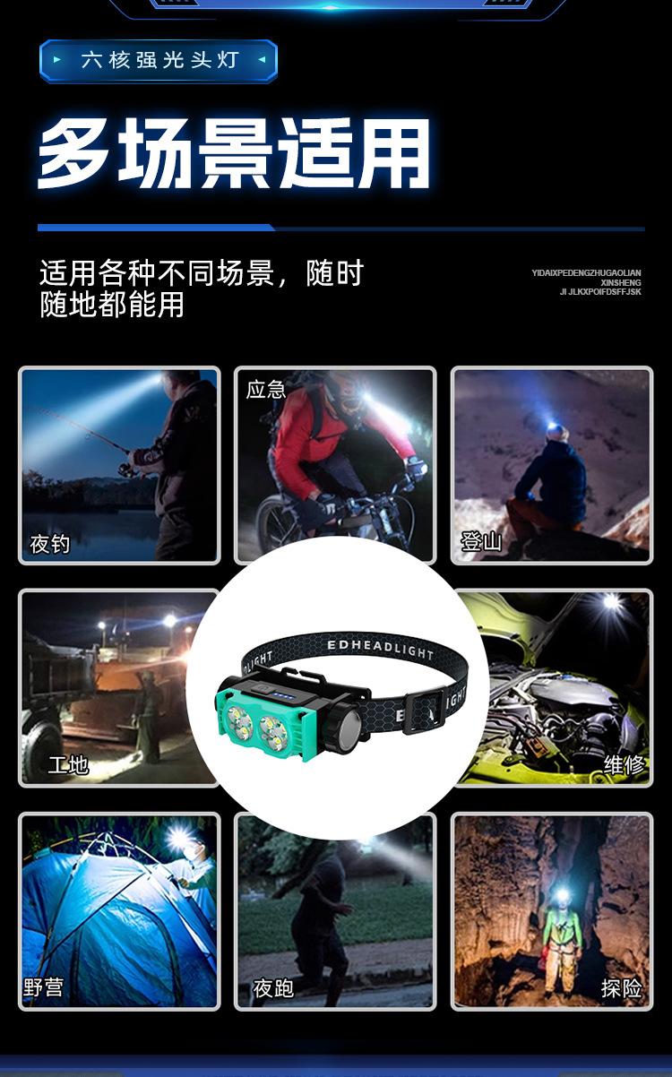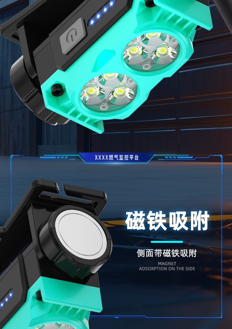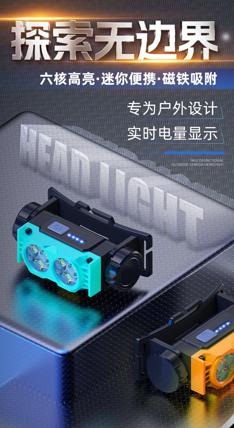 Nuevo faro al aire libre transfronterizo pesca nocturna luz de trabajo luz de larga duración lámpara de iluminación de pantalla eléctrica lámpara de cabeza imán impermeable