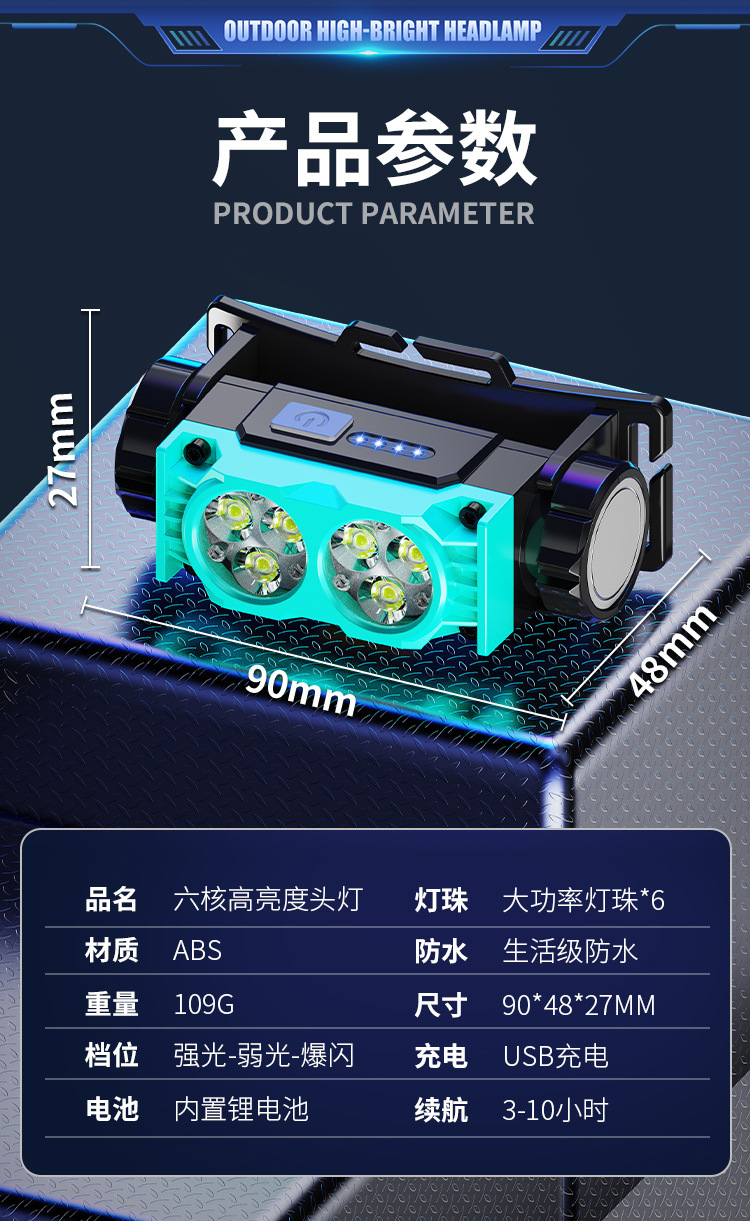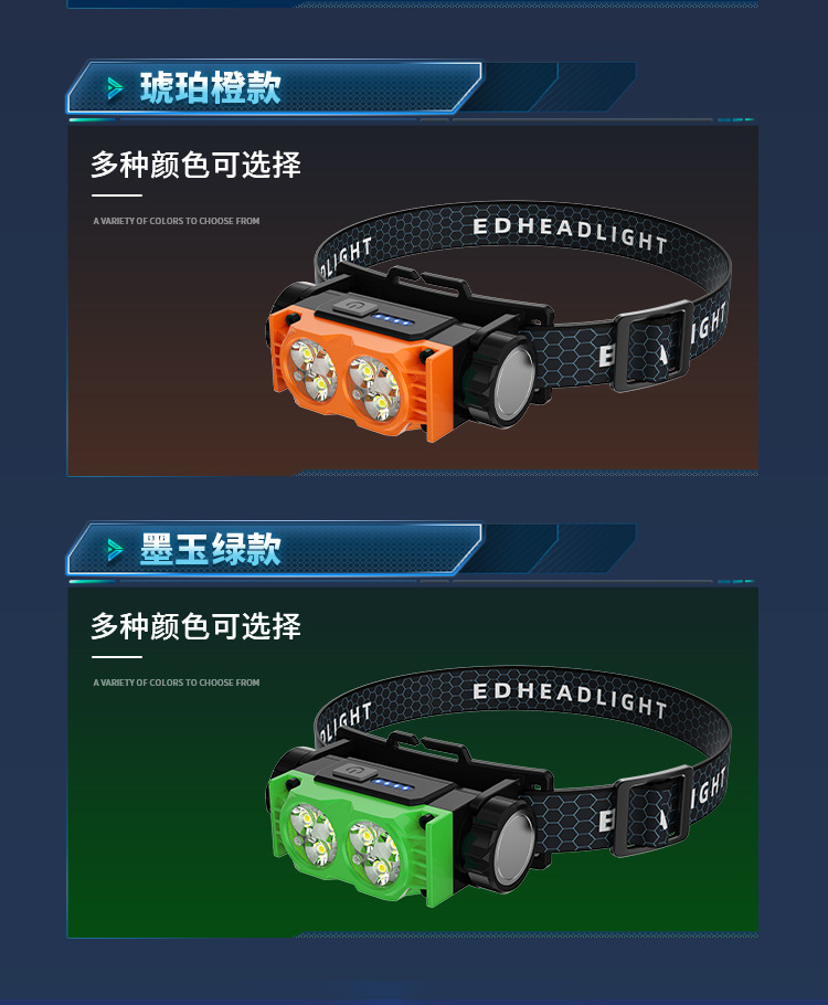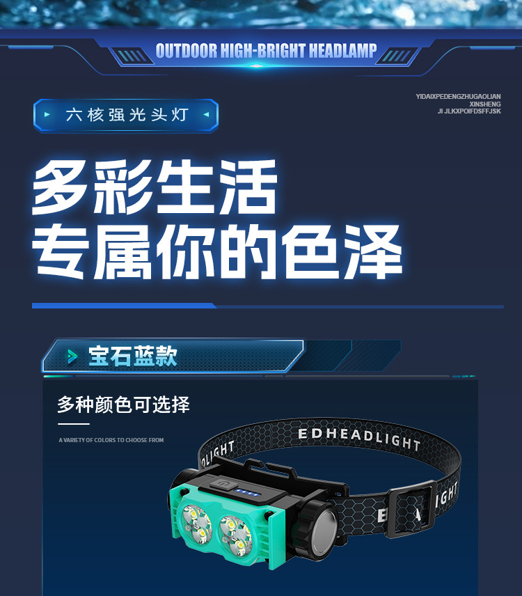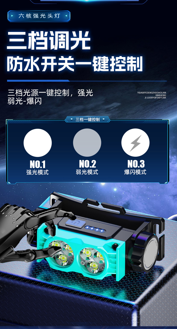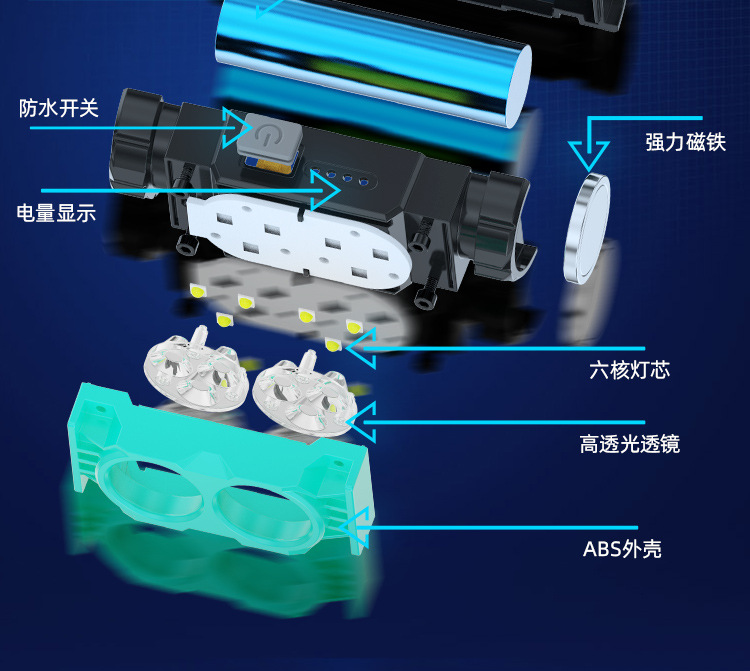 Nuevo faro al aire libre transfronterizo pesca nocturna luz de trabajo luz de larga duración lámpara de iluminación de pantalla eléctrica lámpara de cabeza imán impermeable