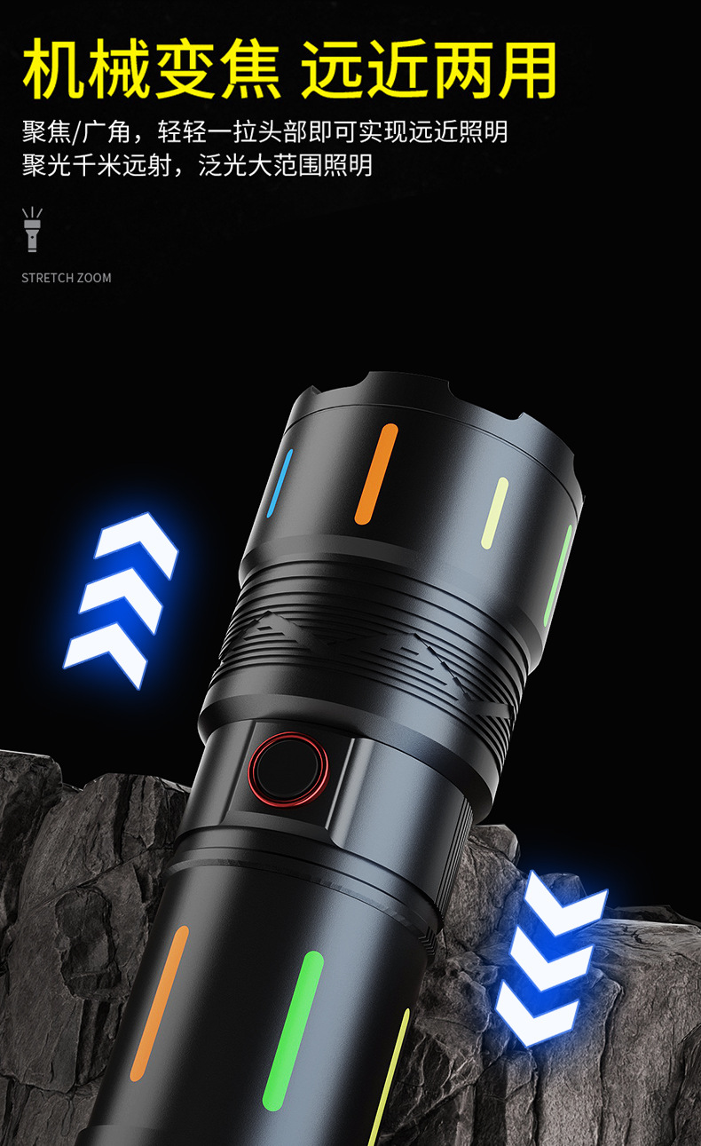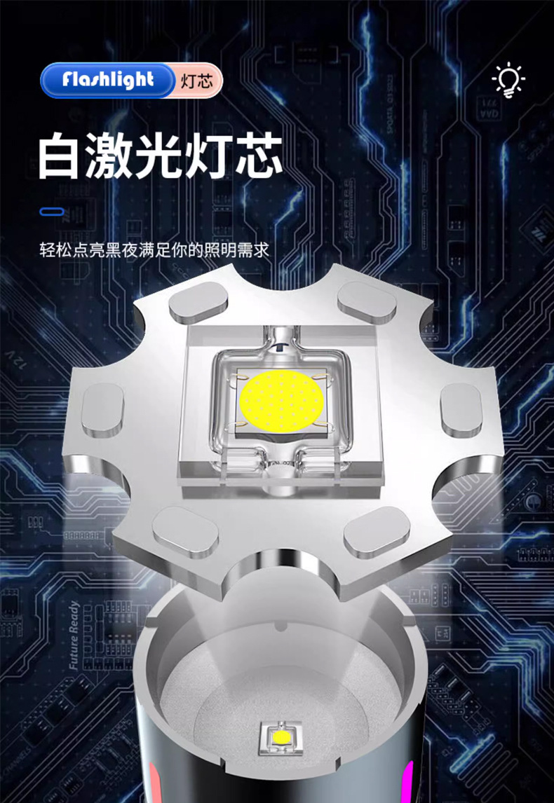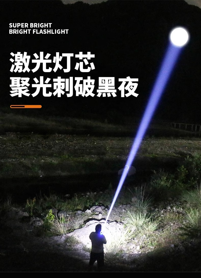 Nuevas linternas transfronterizas al aire libre ultra altas linternas de mano láser blanco ultra largo cañón de acero pequeño lámpara de iluminación impermeable