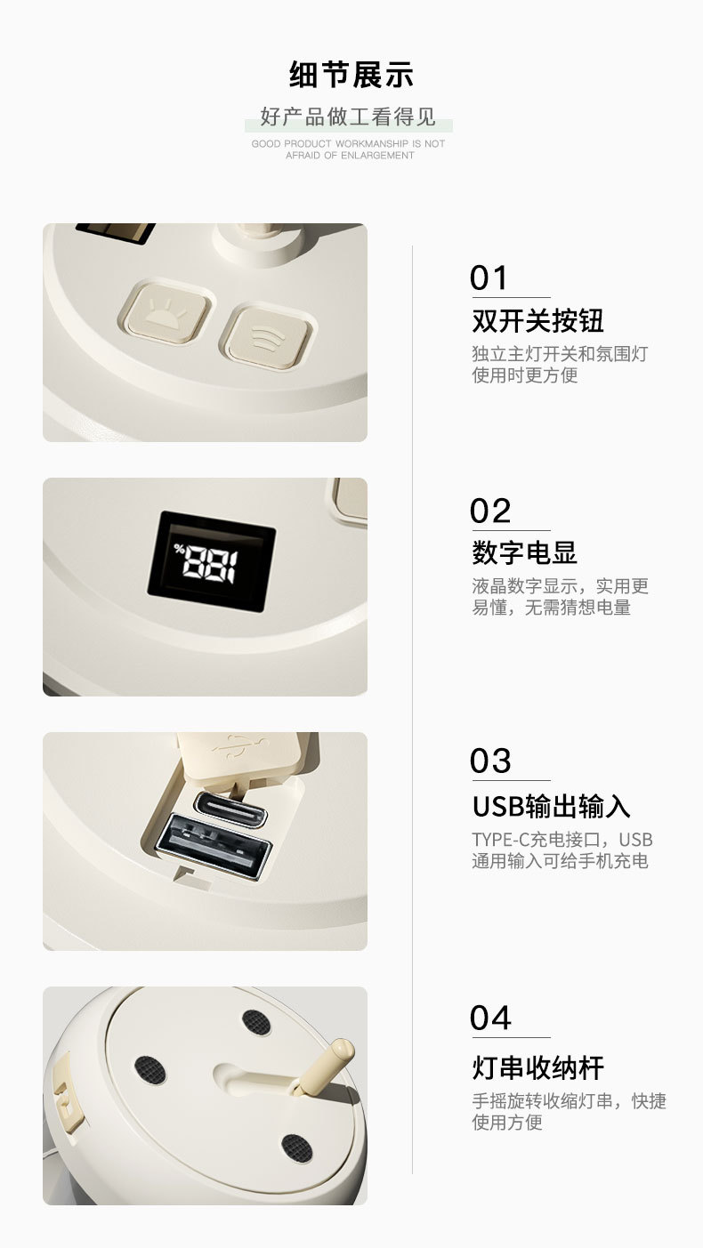 Transfronterizo nueva lámpara de camping luz de atmósfera portátil al aire libre lámpara de tienda multifuncional cadena de lámpara de almacenamiento de campamento impermeable lámpara de cinta métrica