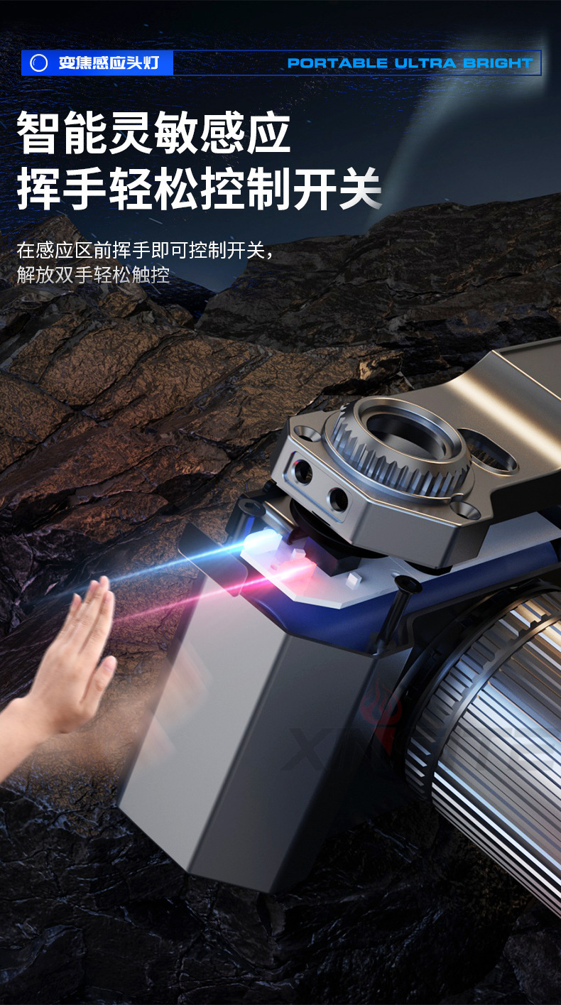 Luz transfronteriza LED recargable headlight resistente al agua pescar larga duración portátil luz de luz alta