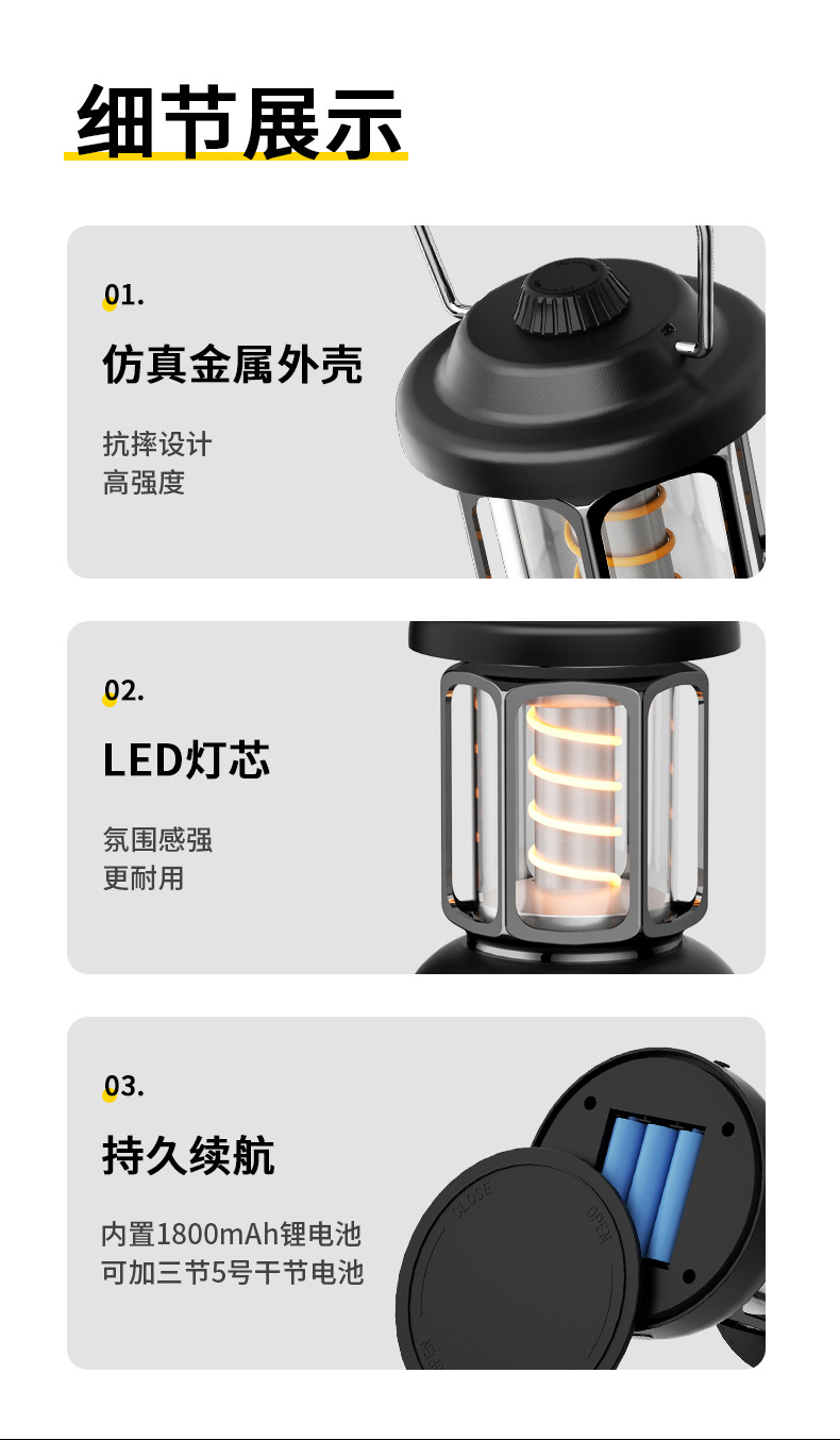 Transfronterizo nueva lámpara de camping exterior multifuncional sin electrodos de atenuación lámpara de atmósfera de camping impermeable lámpara de camping