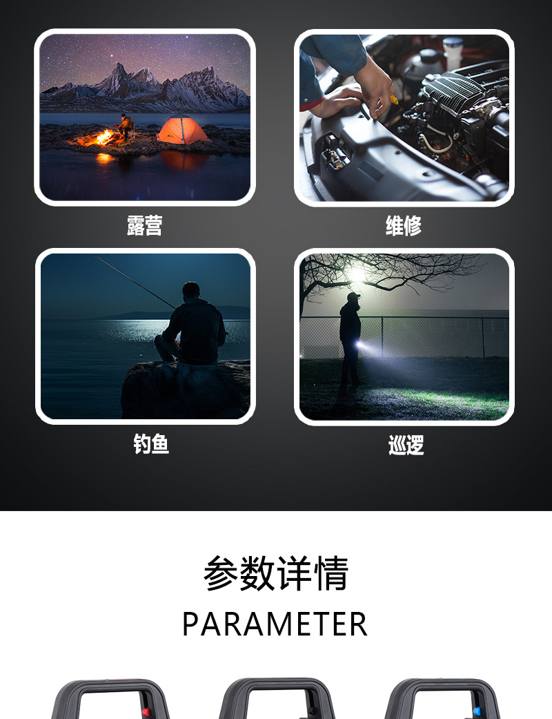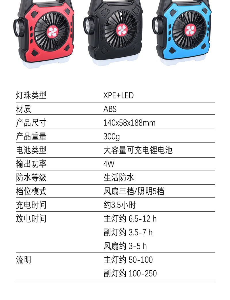 Transfronterizo nuevo camping ventilador luz multi-función recargable portátil reflector acampar al aire libre portátil resaltar luz de trabajo
