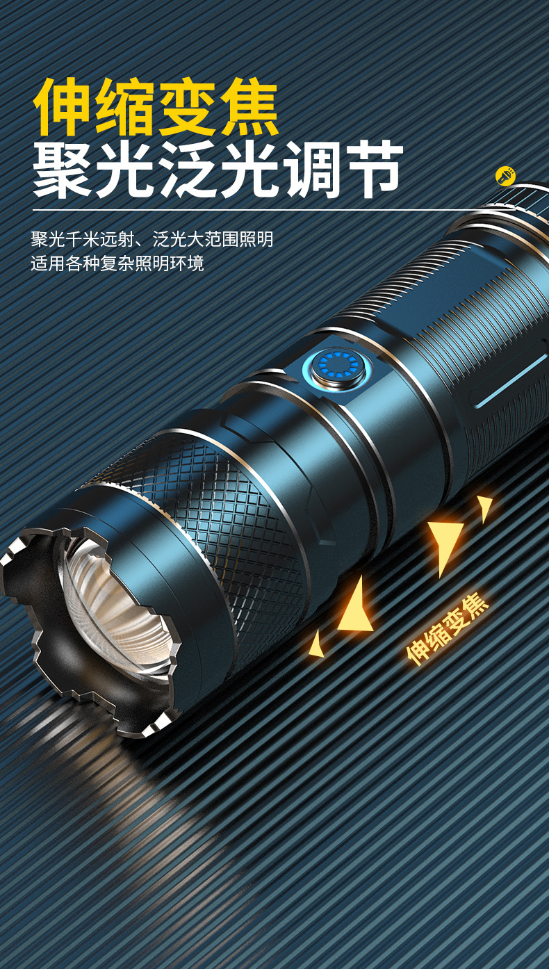 Transfronteriza nueva de alta potencia al aire libre fuerte luz pequeña pistola de acero láser blanco brillante USB recargable retráctil linterna de enfoque