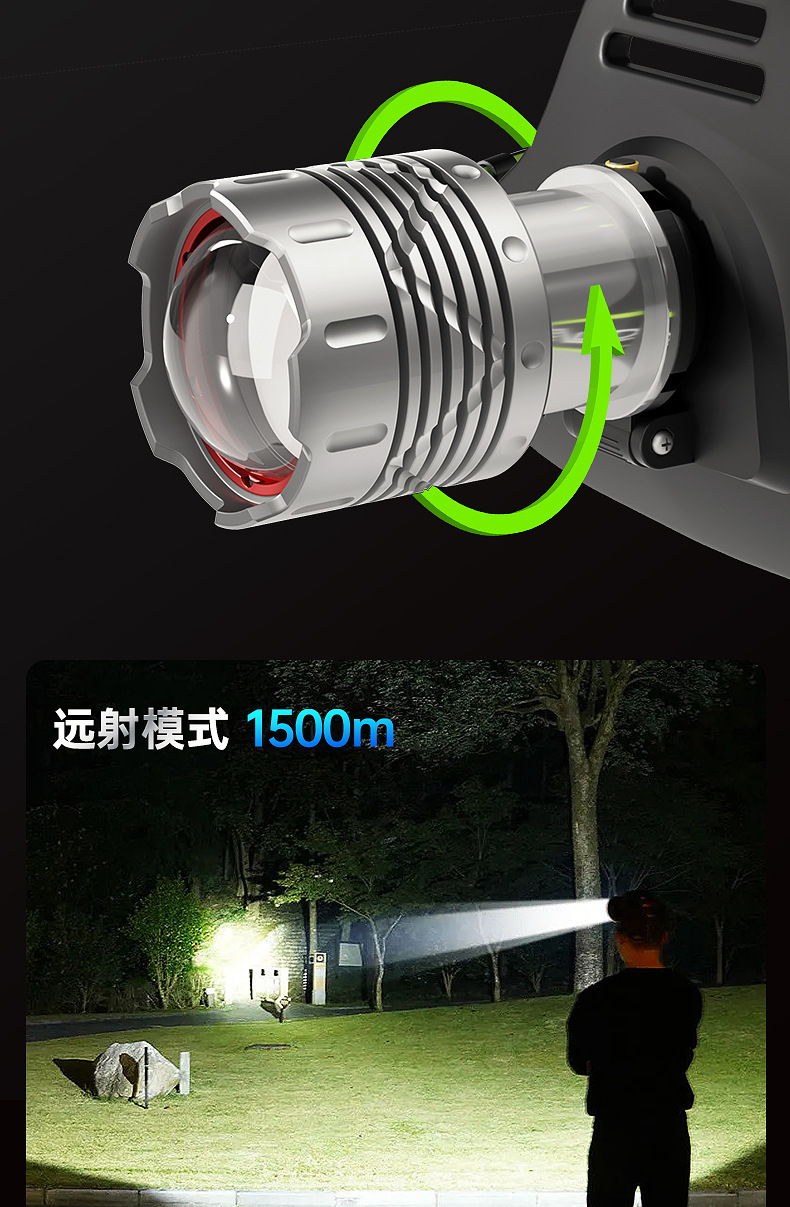 Transfronterizo nuevo faro láser blanco al aire libre multi-función de iluminación impermeable brillante noche lámpara de pesca portátil lámpara montada en la cabeza