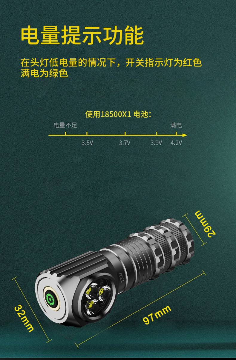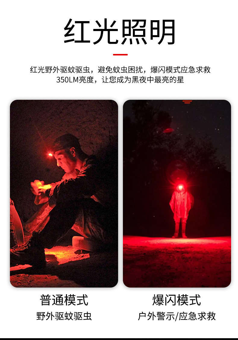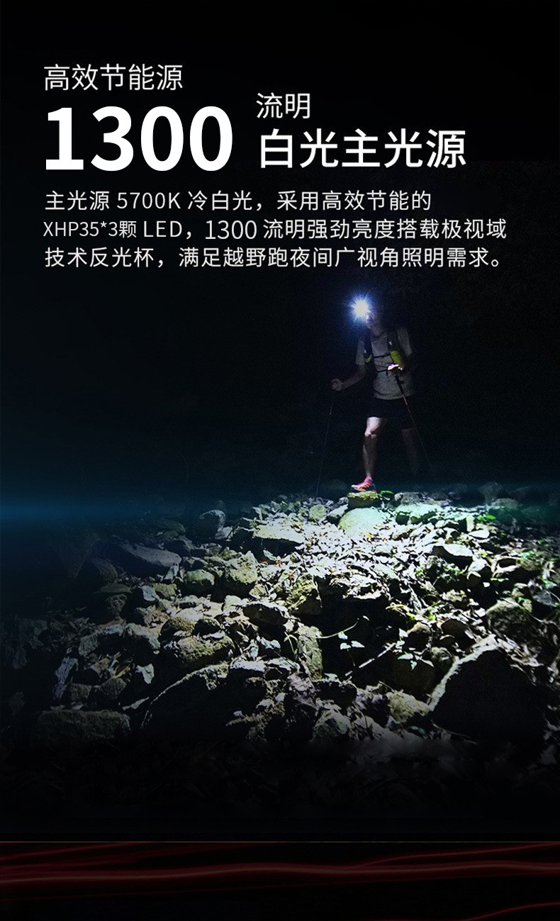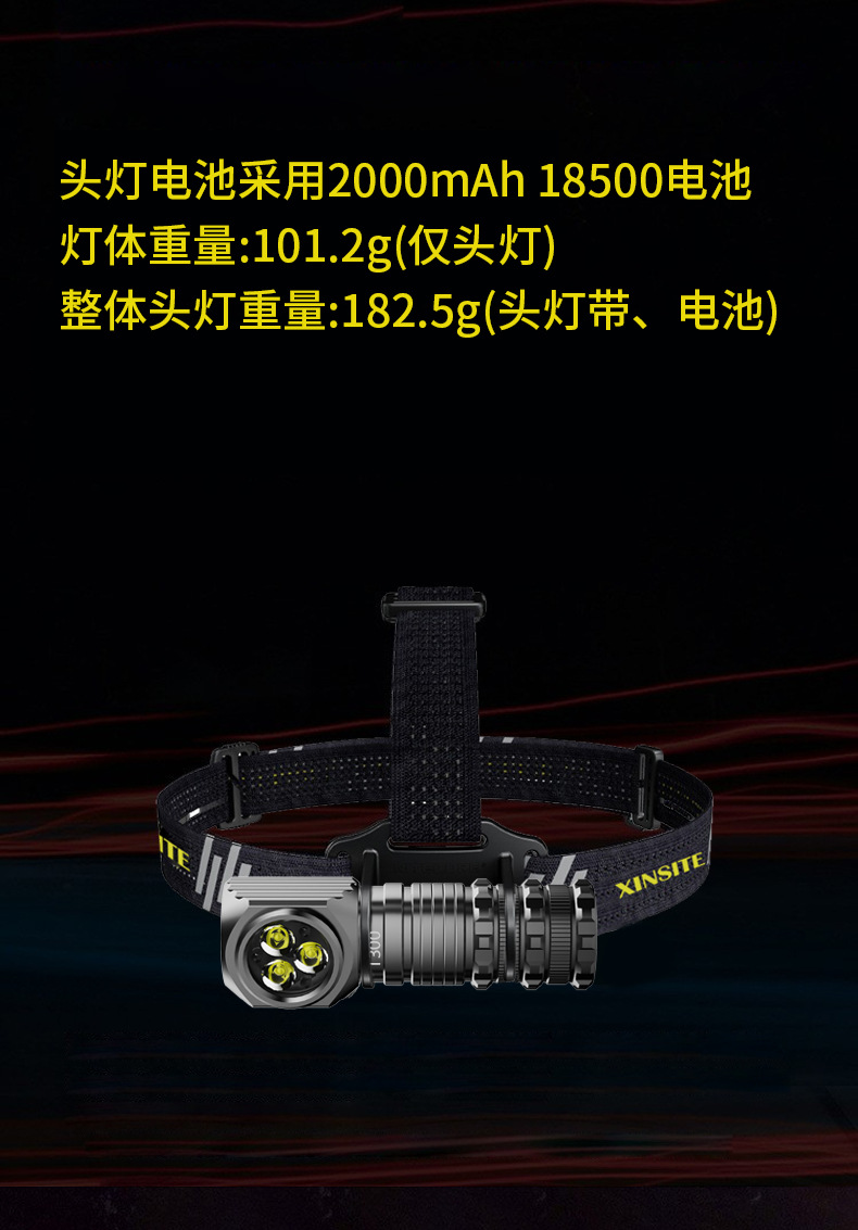 Cuerpo del faro (embalaje + cable de datos + cinturón del faro + batería de litio 18500A) 5-12h