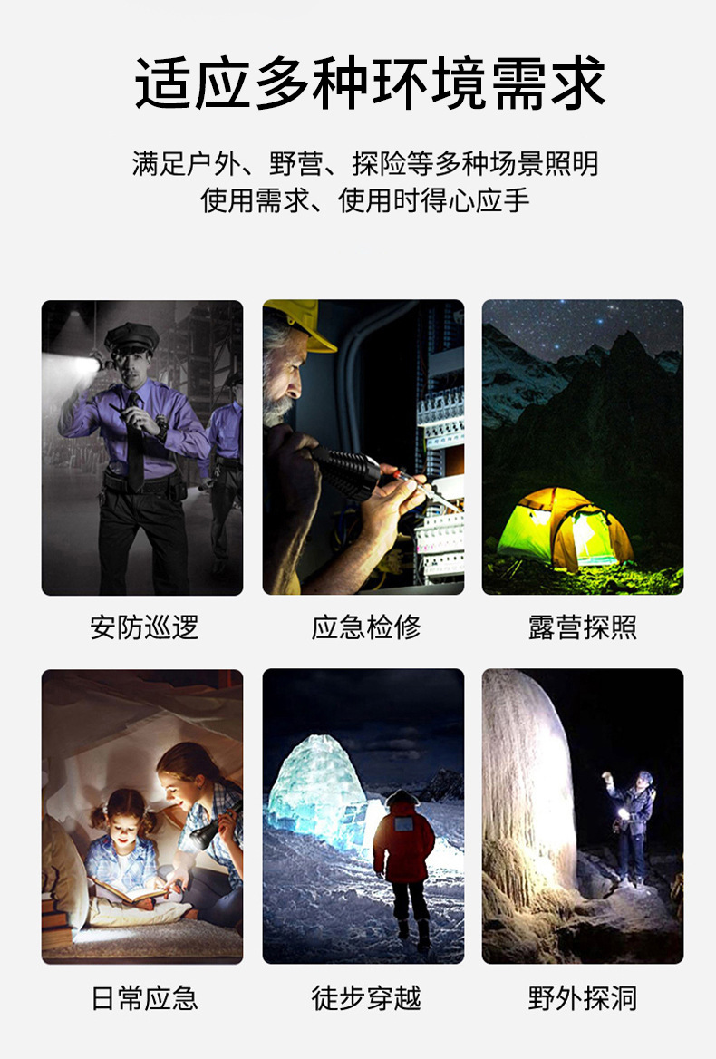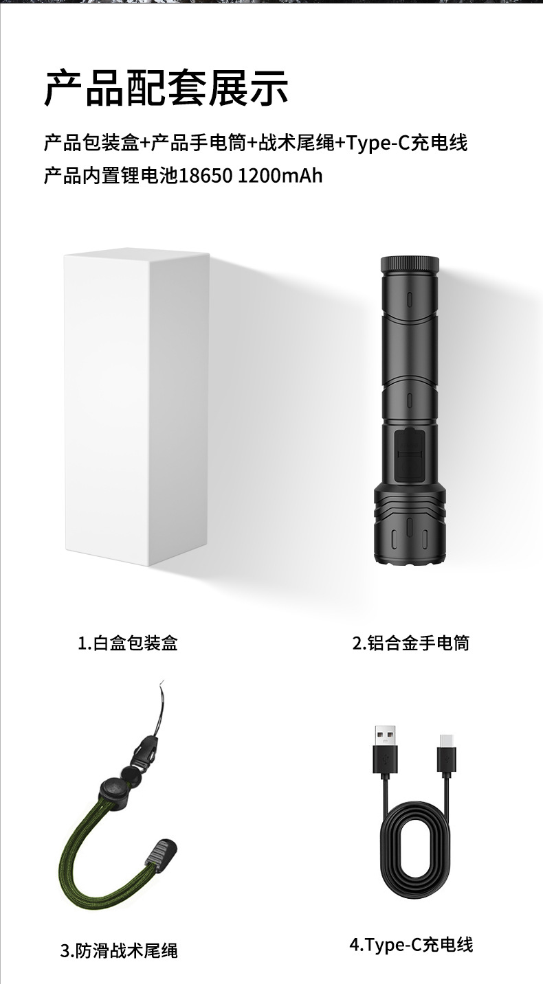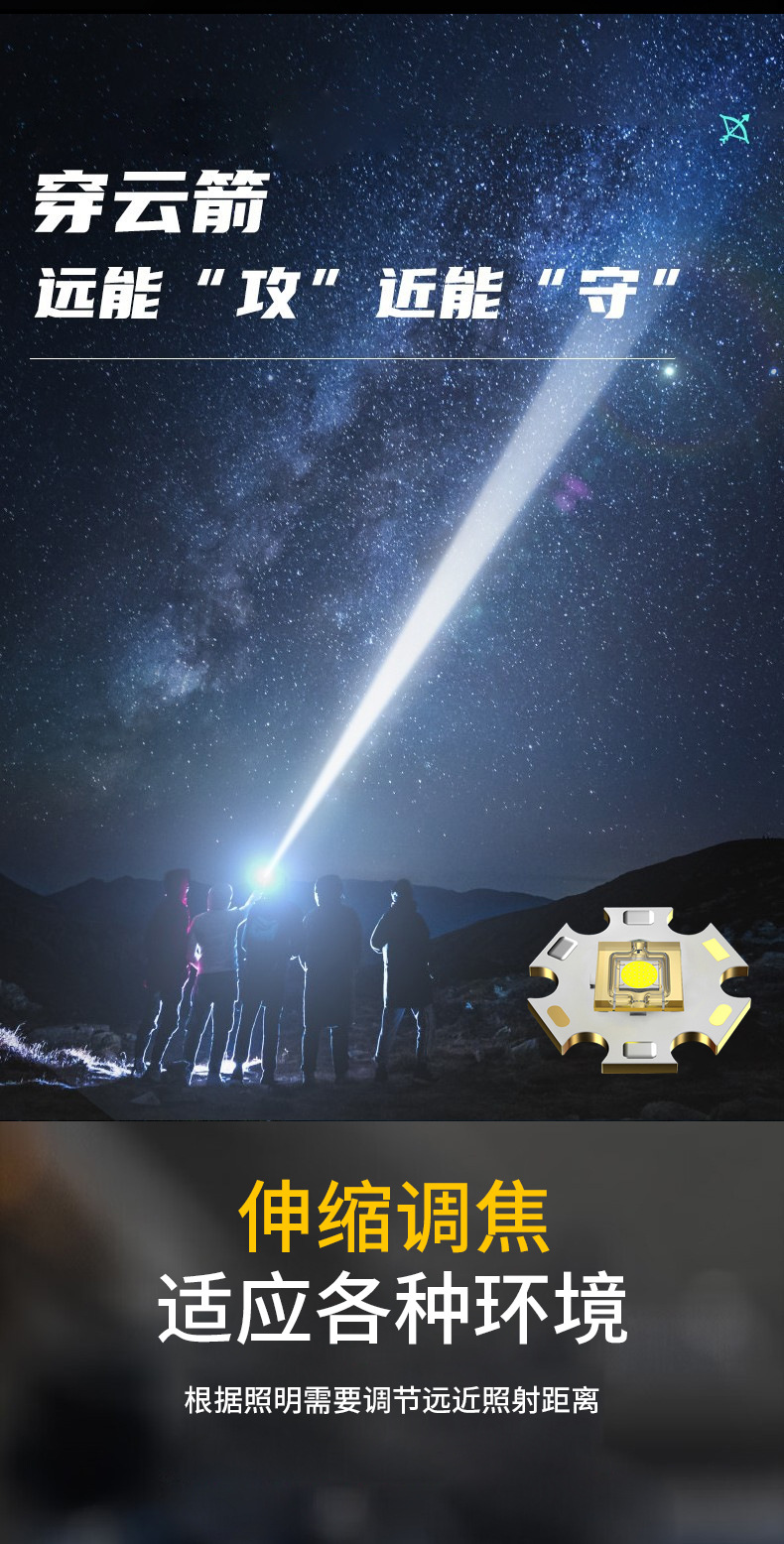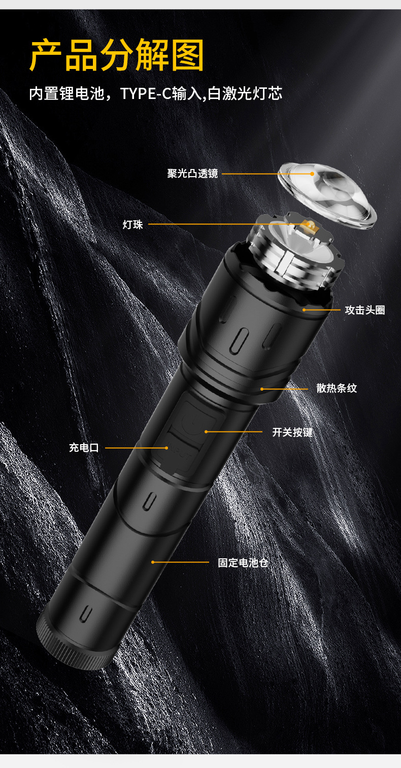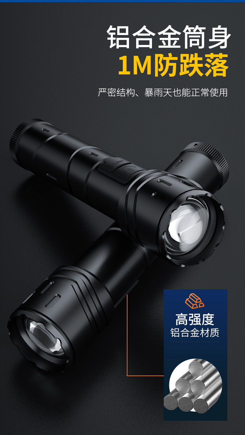 Nueva linterna al aire libre transfronteriza fuerte luz de largo alcance linterna láser blanco multifunción enfoque telescópico lámpara de iluminación LED