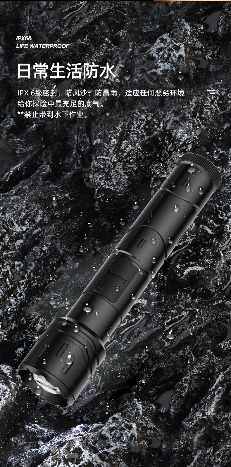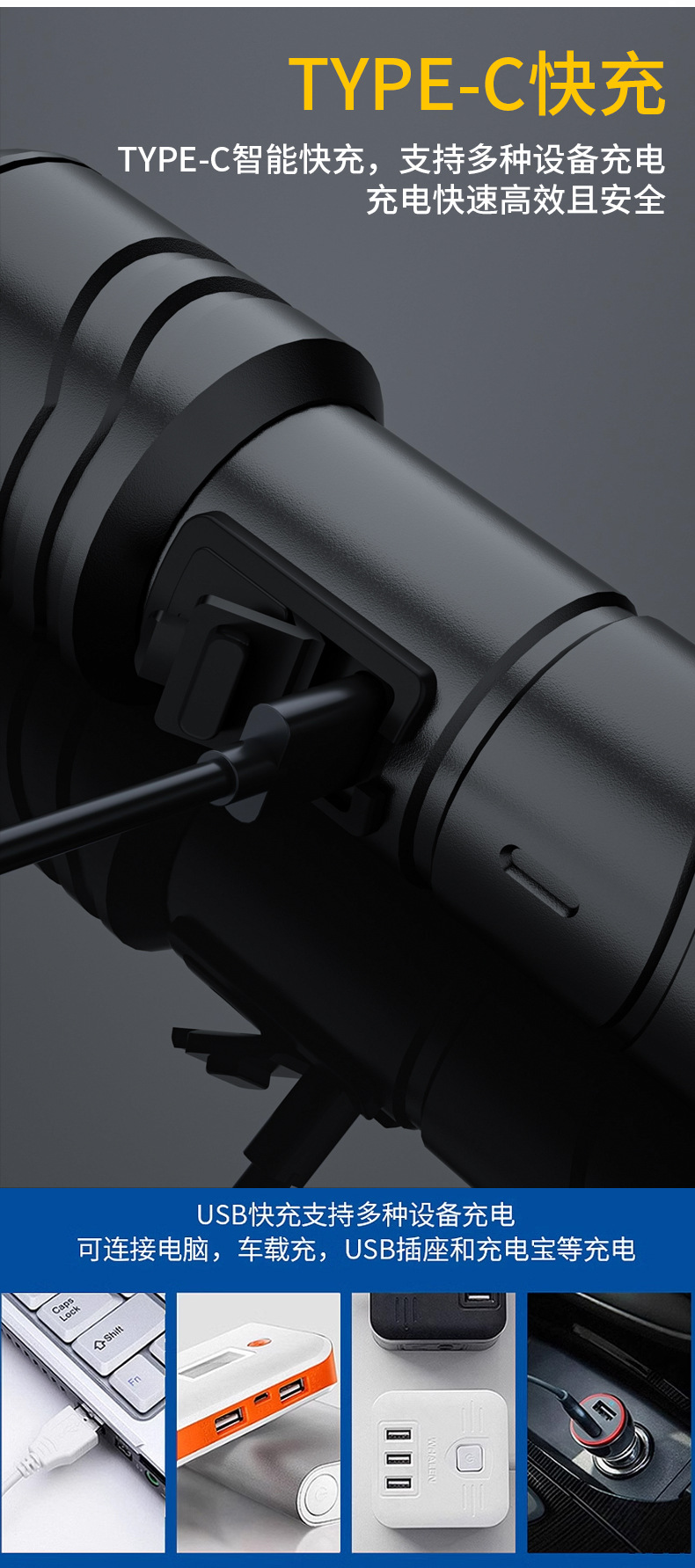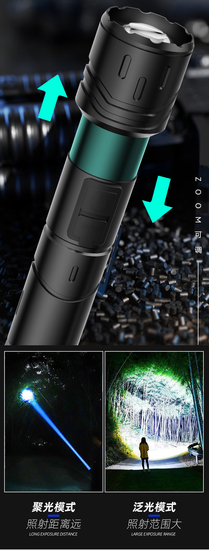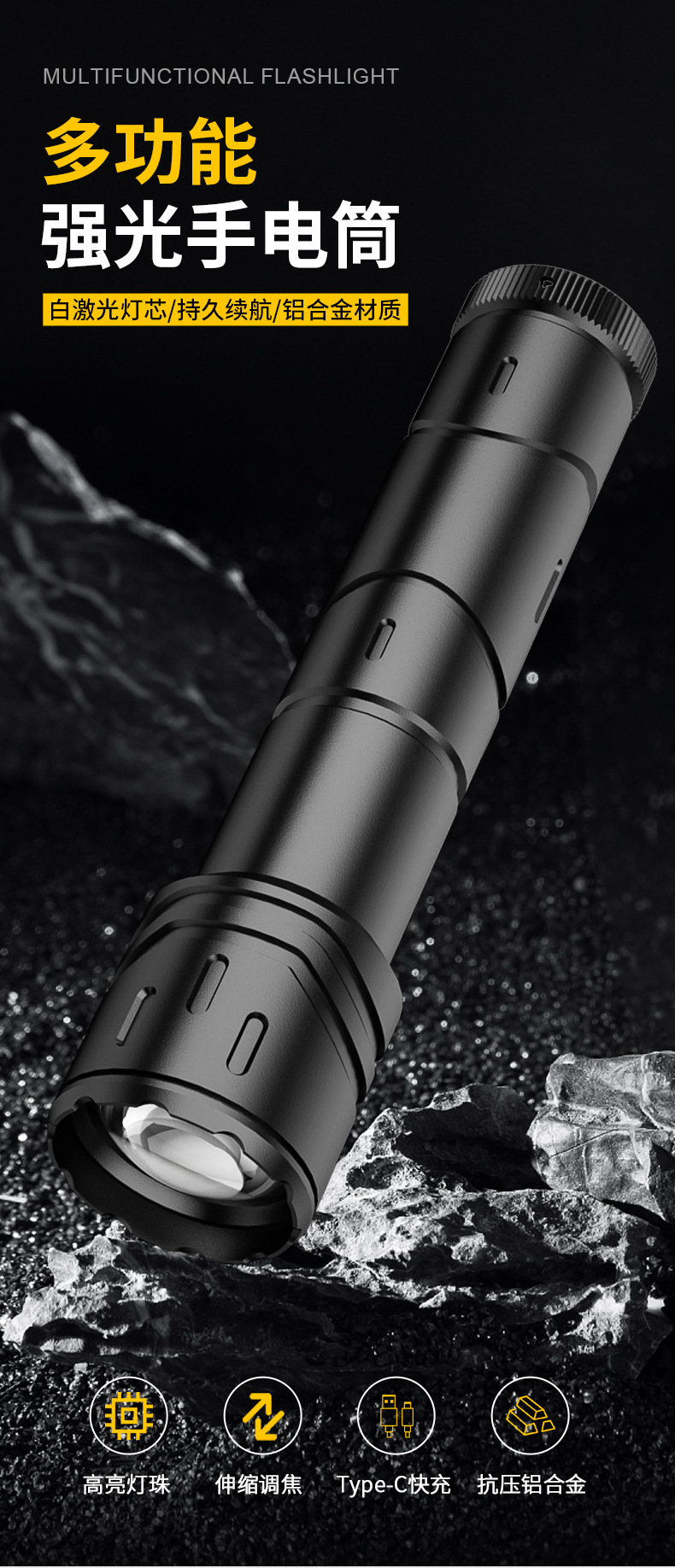 Nueva linterna al aire libre transfronteriza fuerte luz de largo alcance linterna láser blanco multifunción enfoque telescópico lámpara de iluminación LED