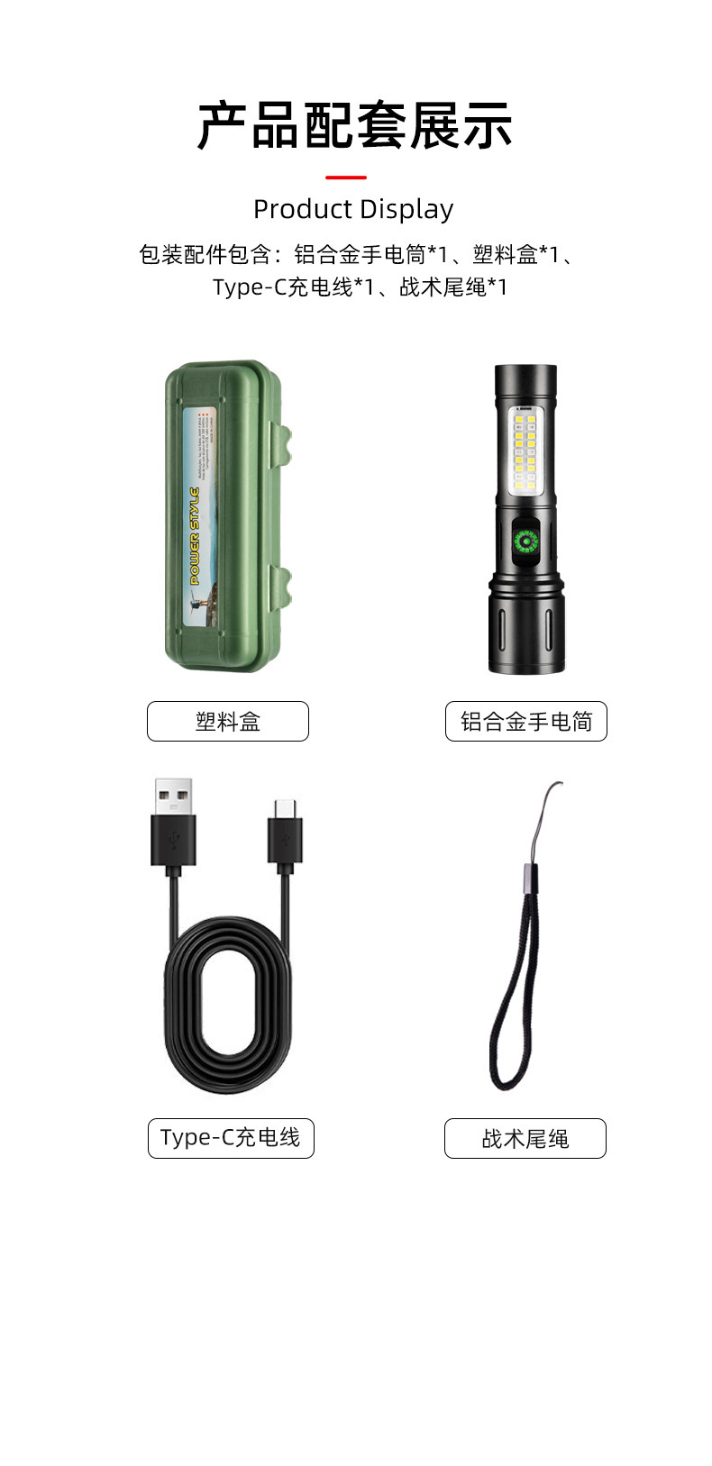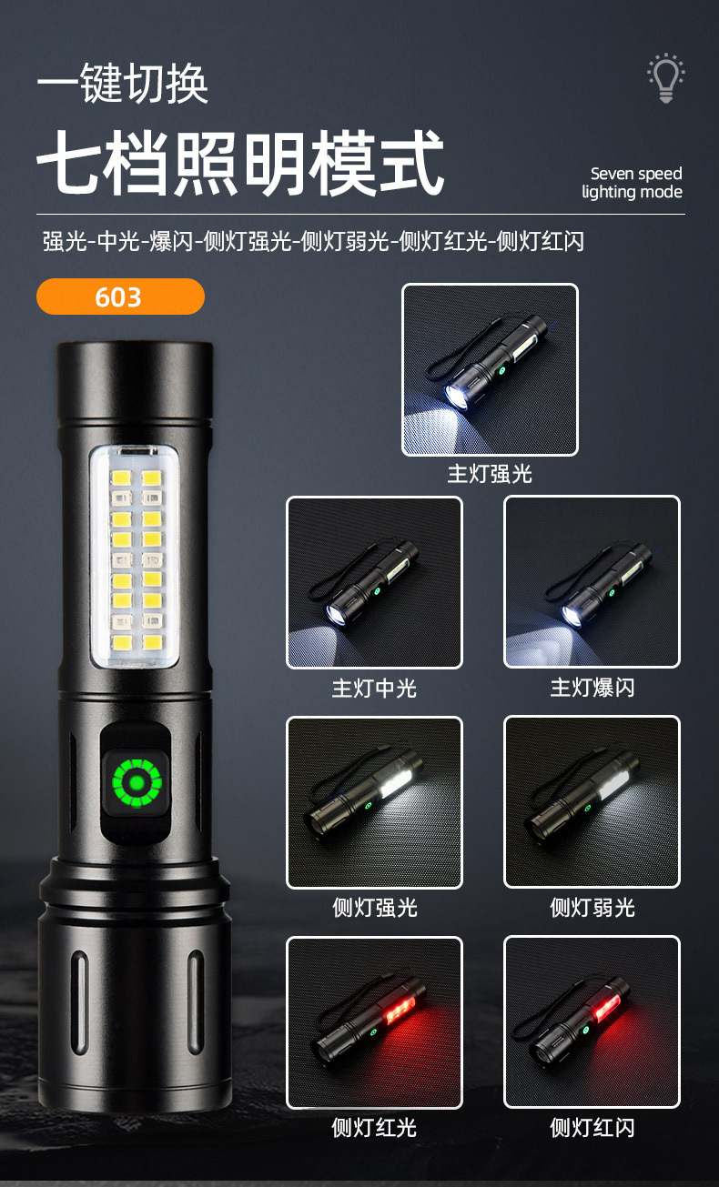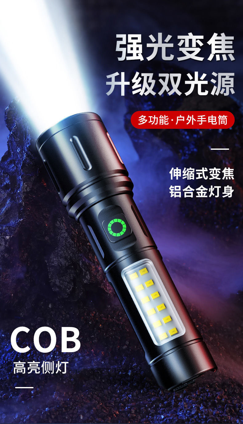 Transfronteriza nueva linterna impermeable al aire libre iluminación multifuncional COB luz lateral de larga resistencia de emergencia de enfoque retráctil