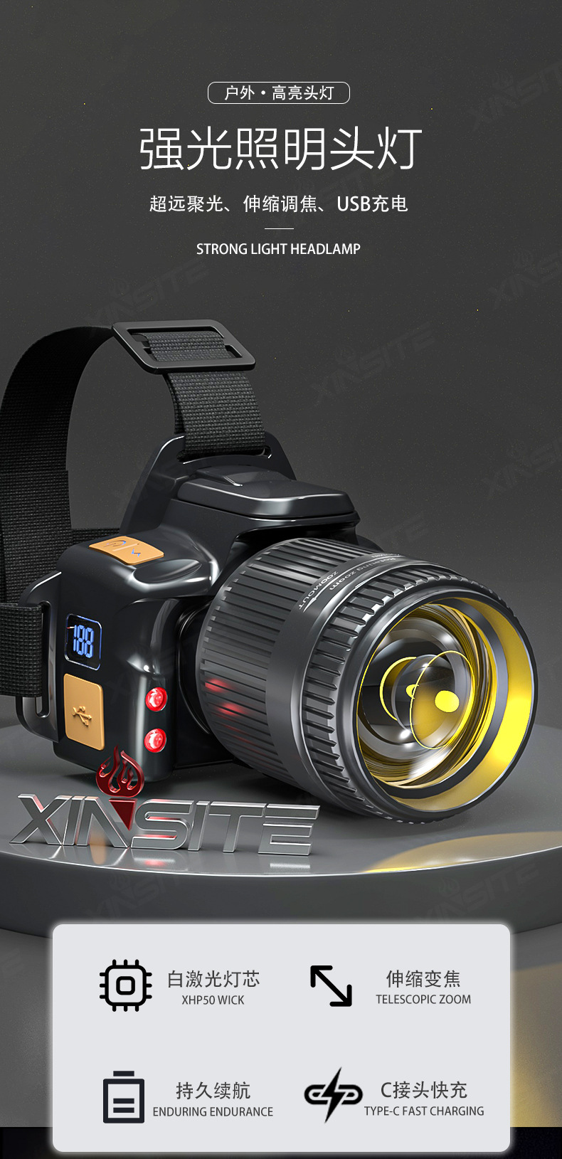 Nuevos faros para exteriores transfronterizos, larga duración de la batería, iluminación de alto brillo, luz roja, lámpara de auriculares con sensor multifuncional