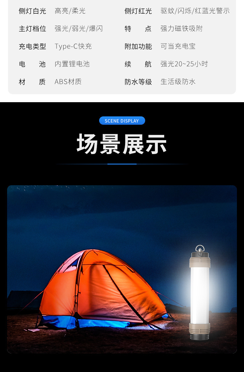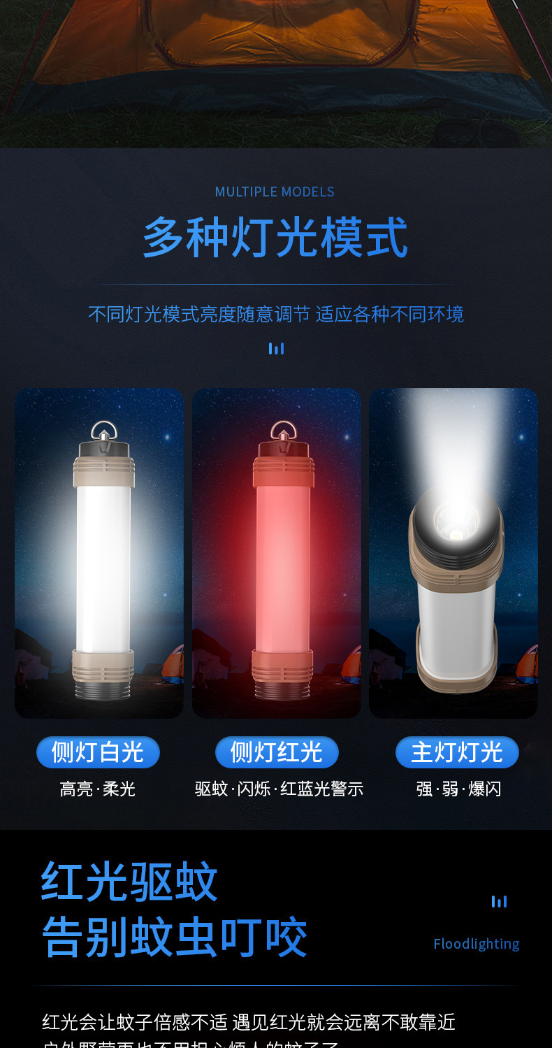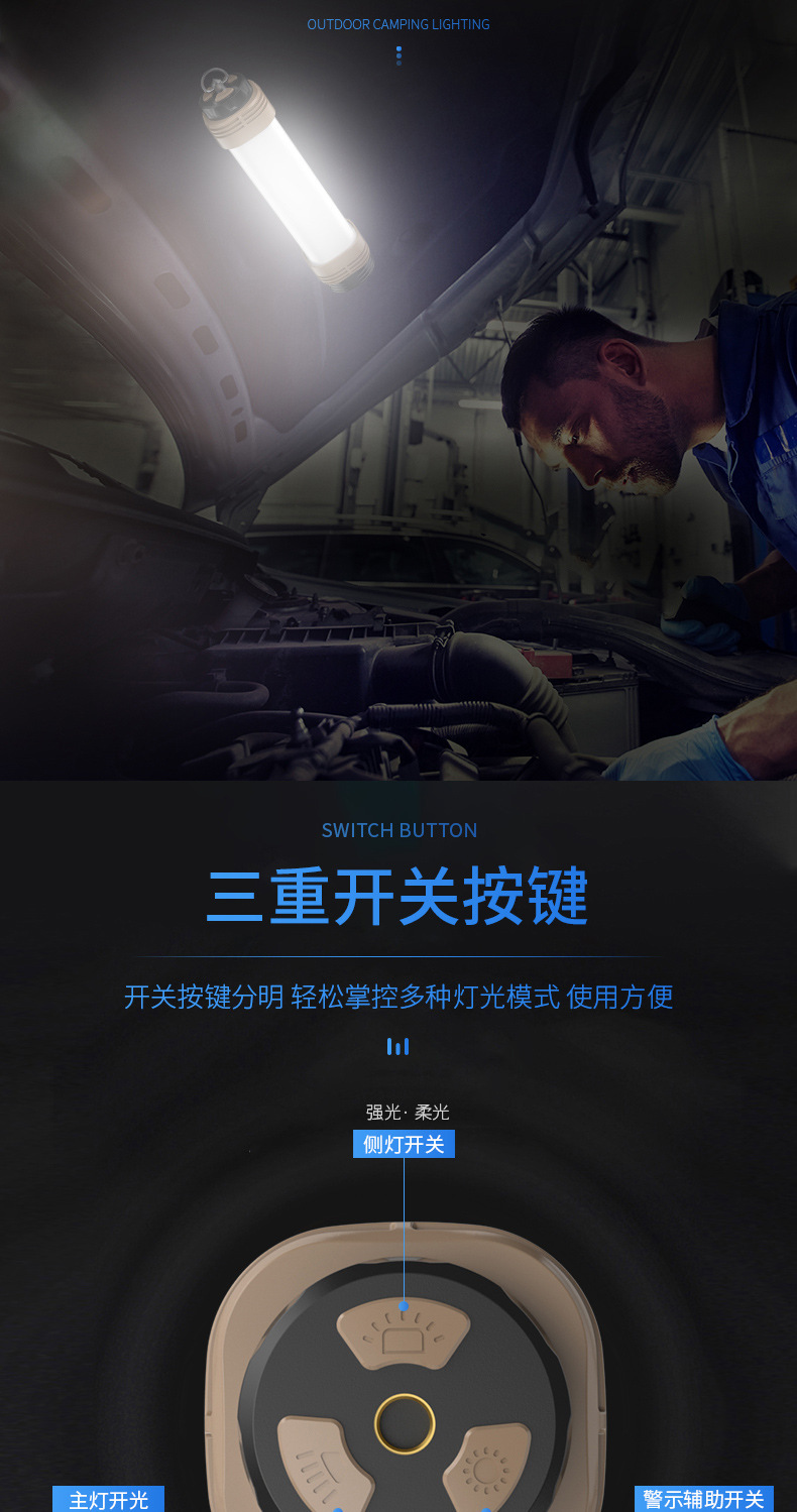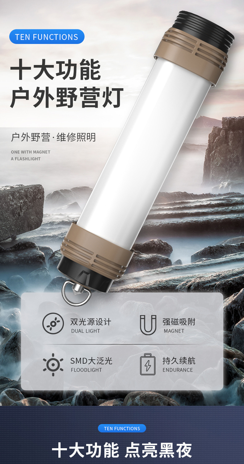 Transfronterizo nueva fuente de luz doble camping luz al aire libre impermeable emergencia trabajo luz lámpara de mesa de iluminación con imán carga tesoro
