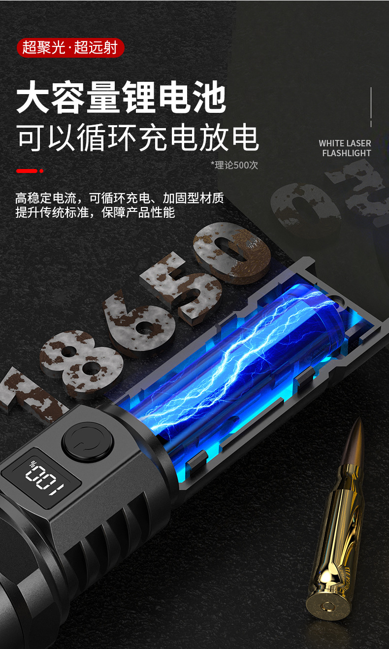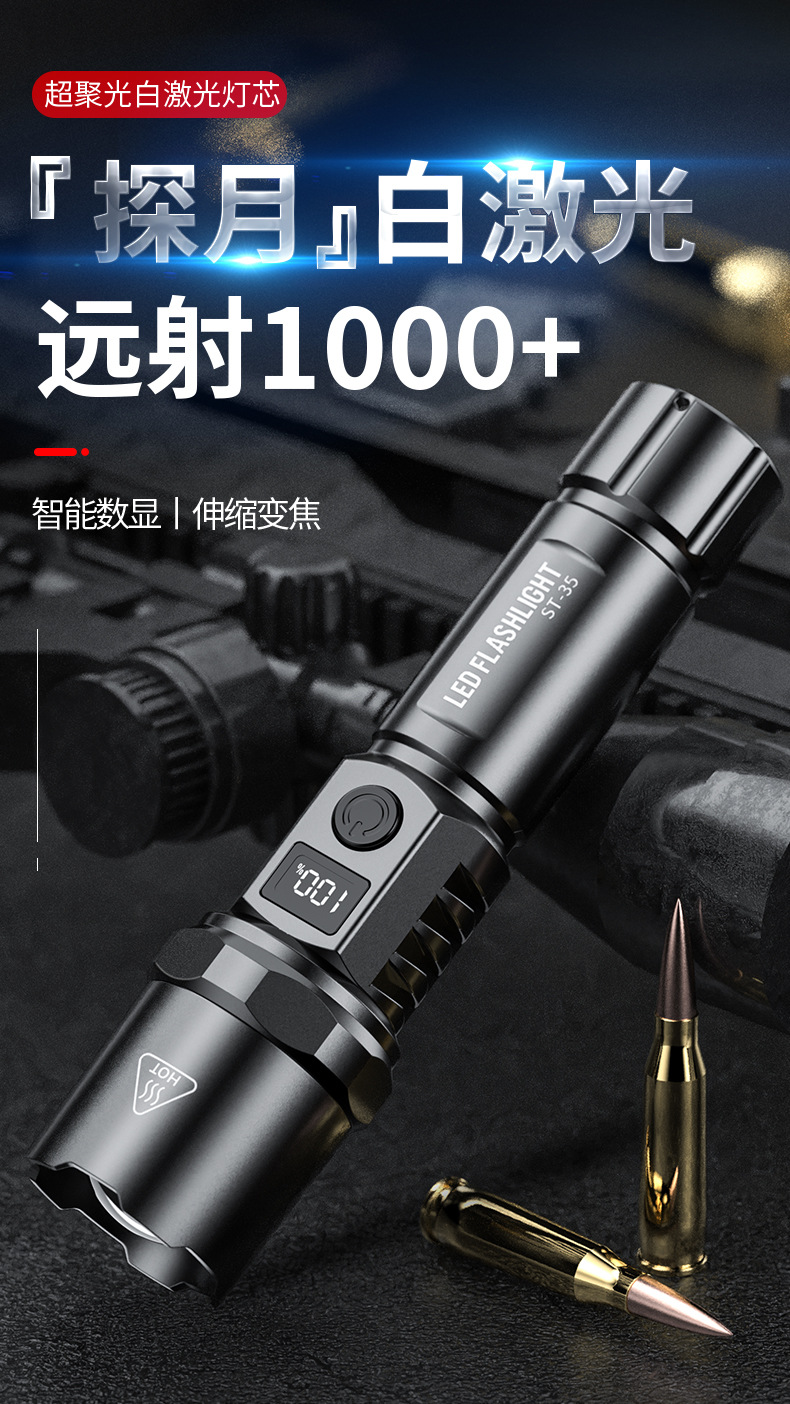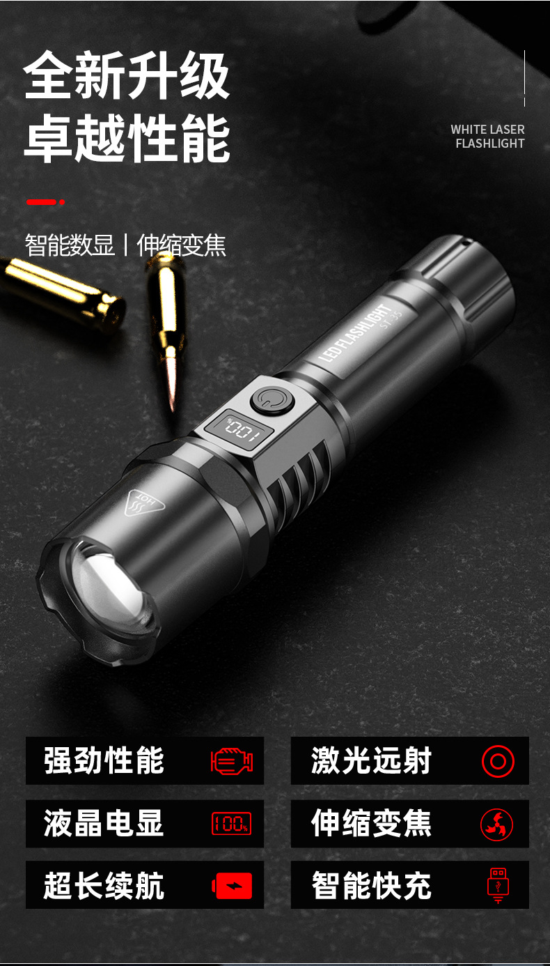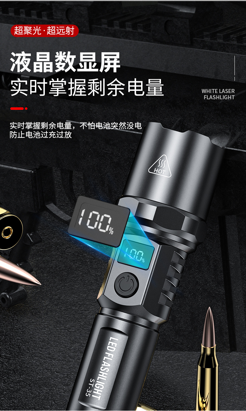 Transfronteriza nueva luz fuerte linterna Super brillante pantalla digital inteligente disparo remoto lámpara de iluminación impermeable larga resistencia de carga de enfoque