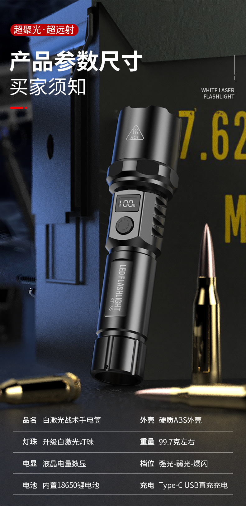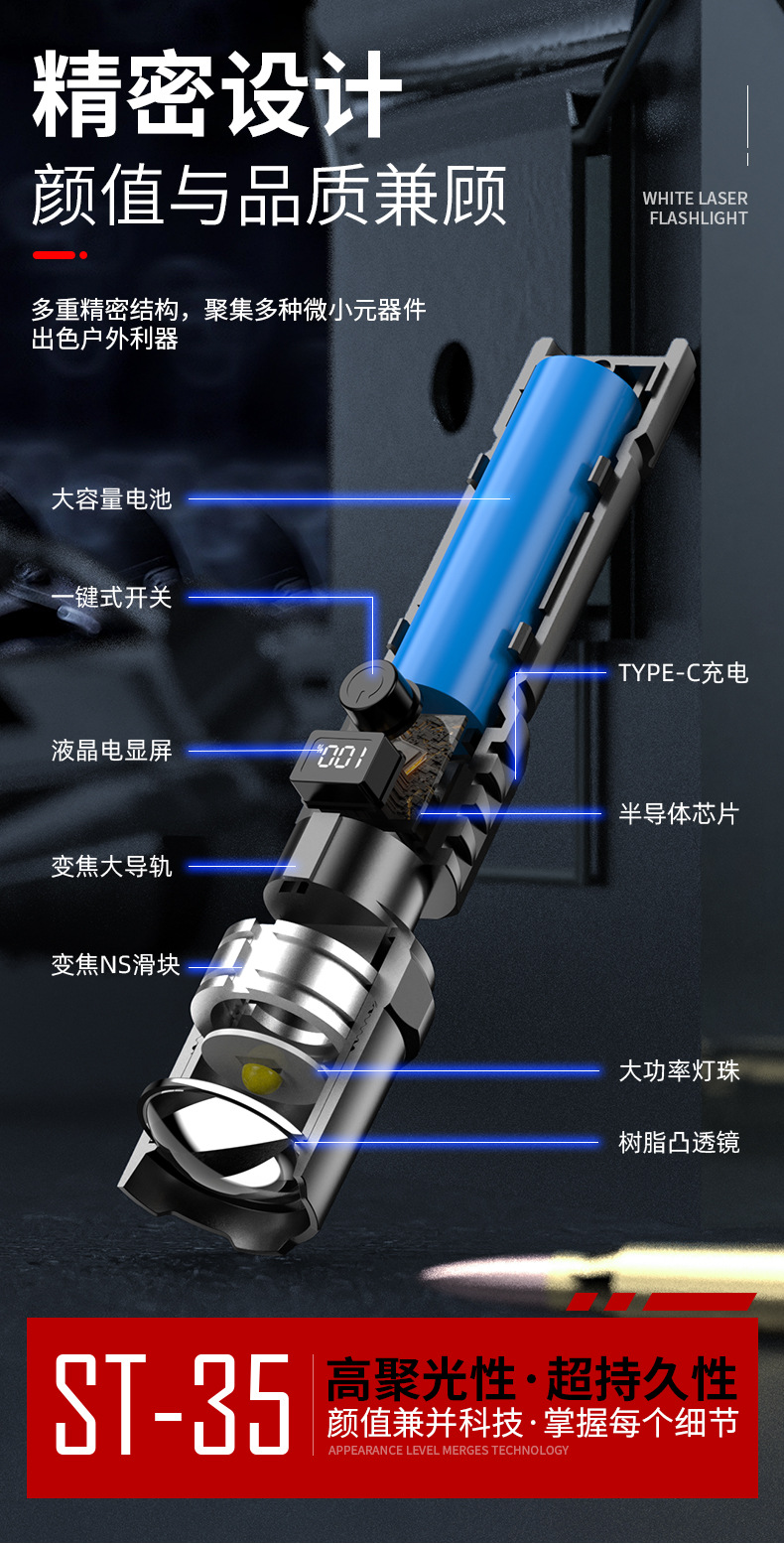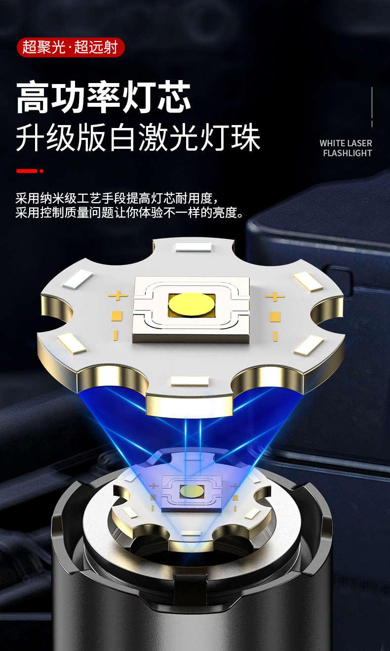 Transfronteriza nueva luz fuerte linterna Super brillante pantalla digital inteligente disparo remoto lámpara de iluminación impermeable larga resistencia de carga de enfoque