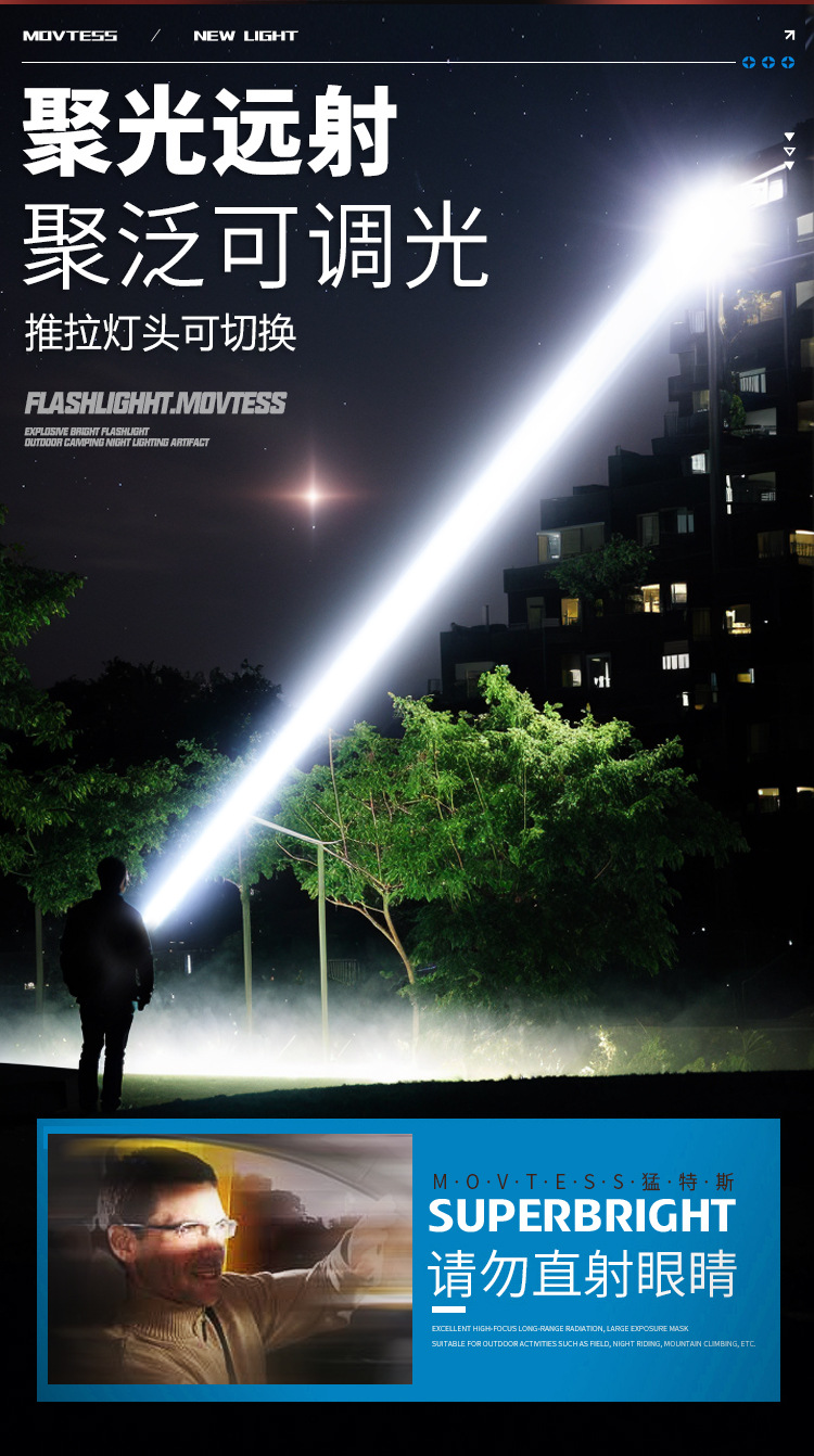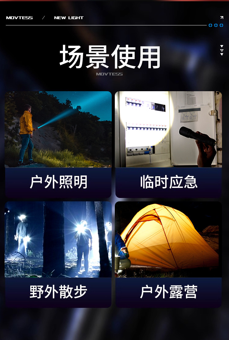 Nuevas linternas transfronterizas al aire libre lámpara de iluminación recargable multifuncional luz de luz de mano resistente al agua