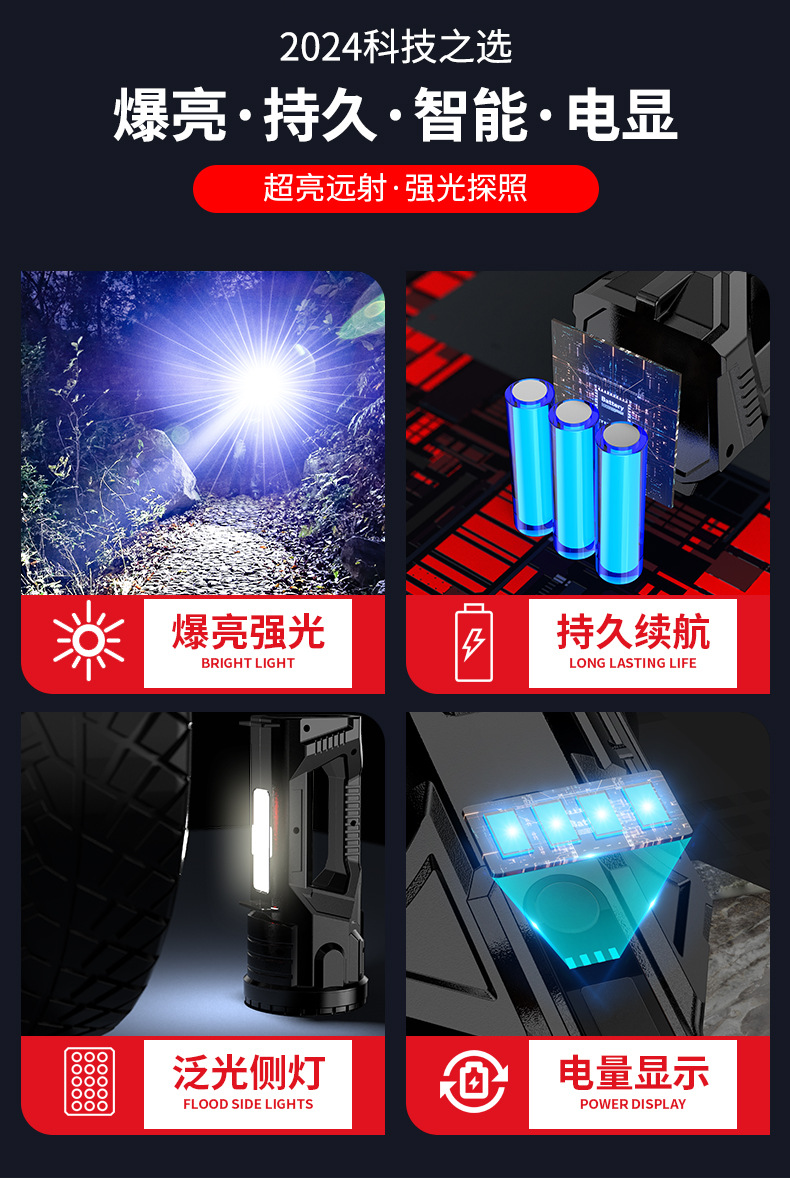 Transfronterizo nueva lámpara portátil al aire libre multifuncional de alta potencia lámpara de trabajo gran iluminación de inundación con lámpara de mantenimiento de visualización eléctrica