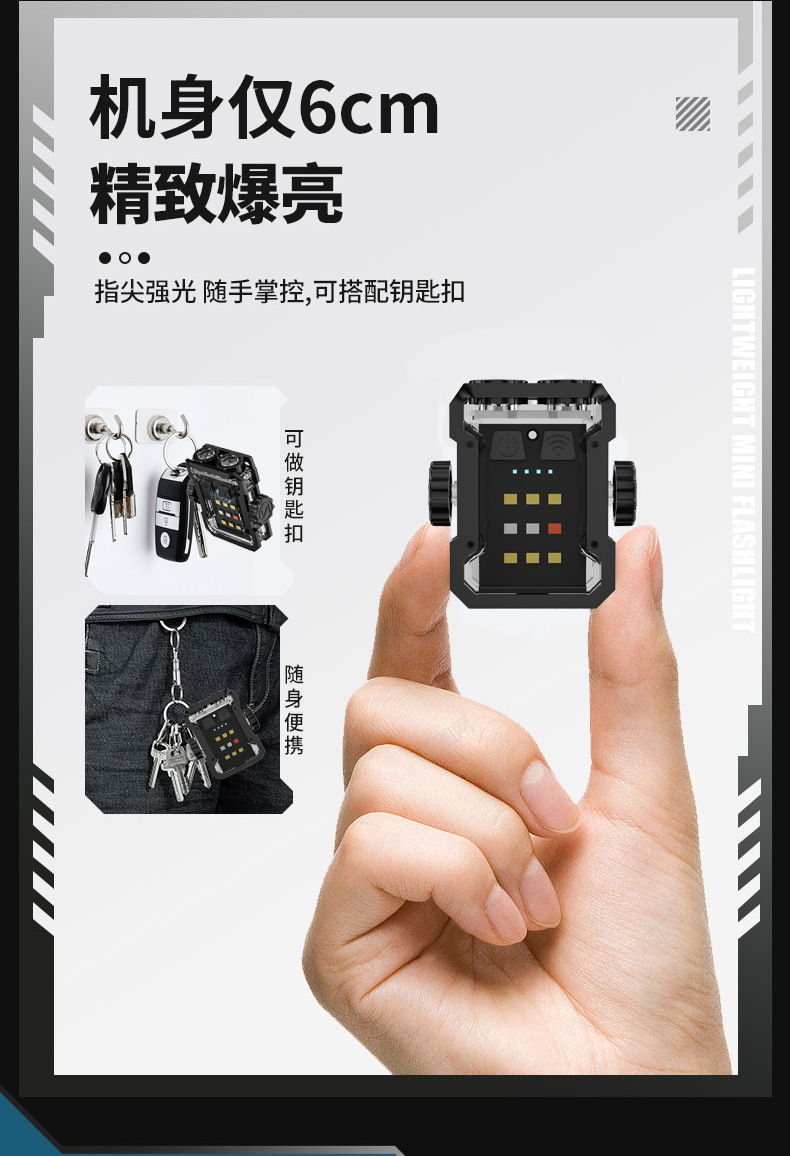 Transfronterizo nuevo llavero luz al aire libre iluminación multifuncional mini mano electroimán Gyro larga resistencia portátil Luz