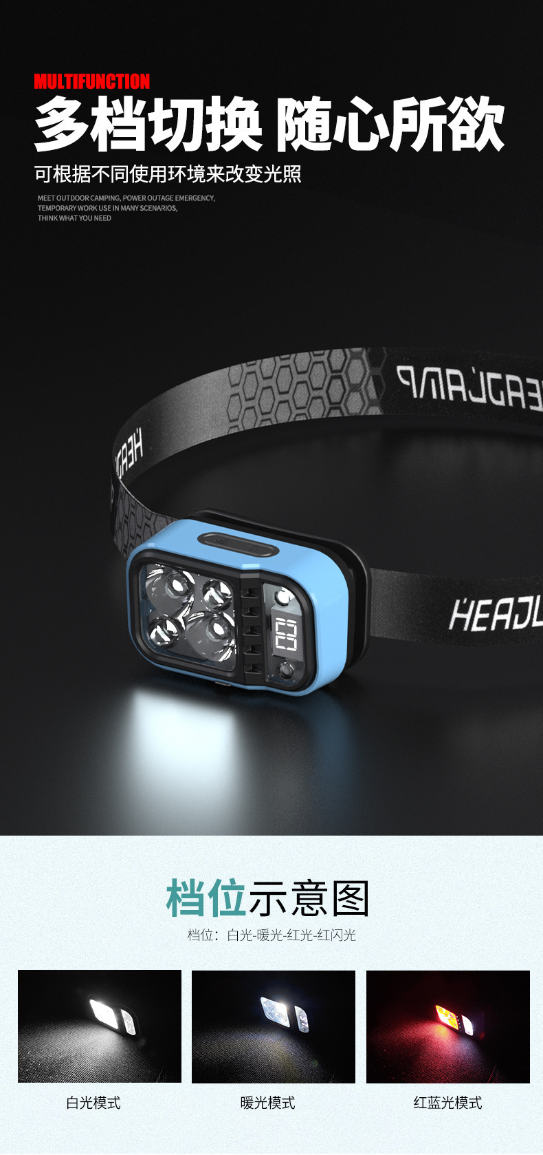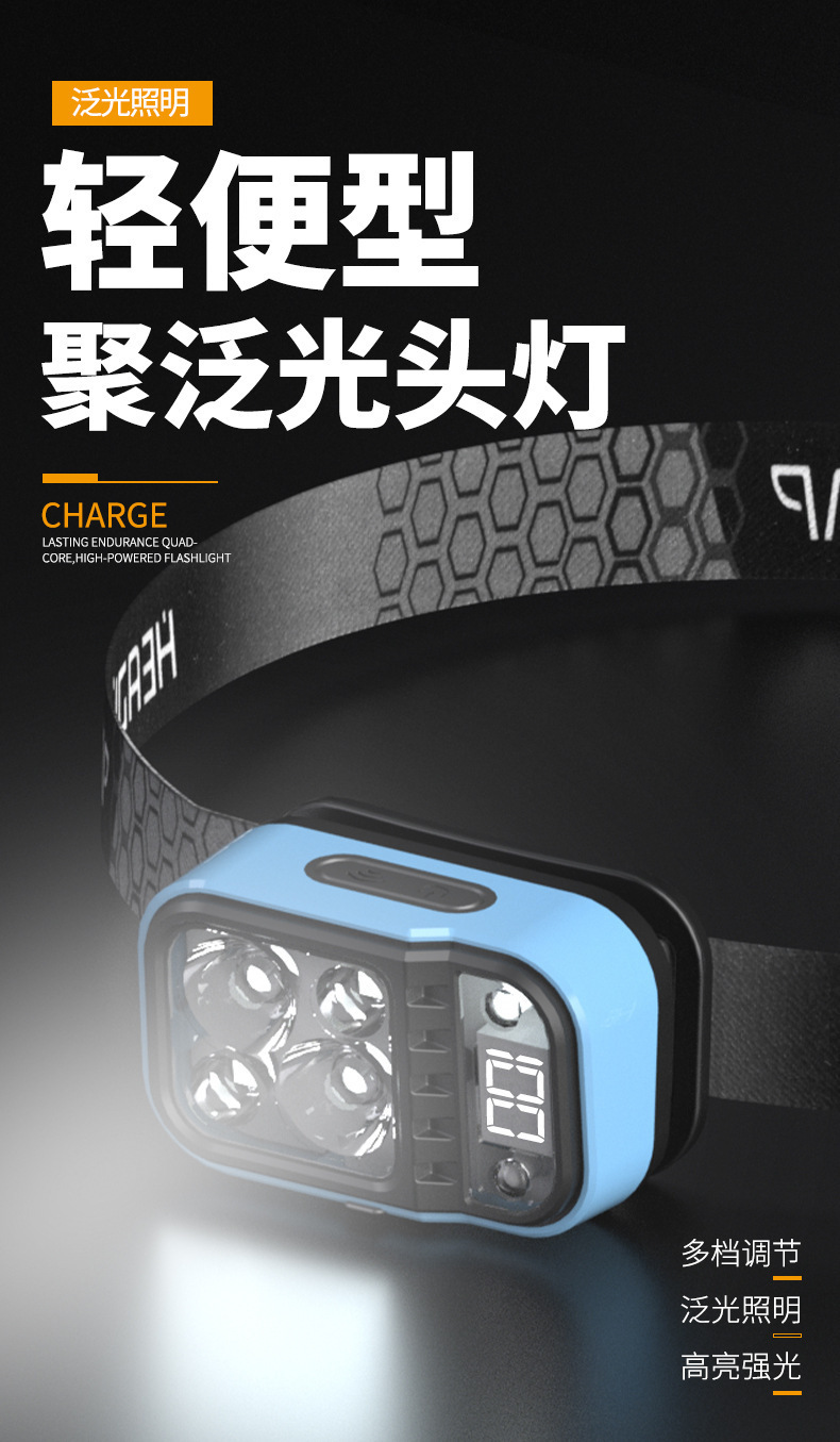 Transfronterizo nueva noche lámpara de pesca faro al aire libre LED luz Super brillante sensor cabeza-montado larga vida carga faro