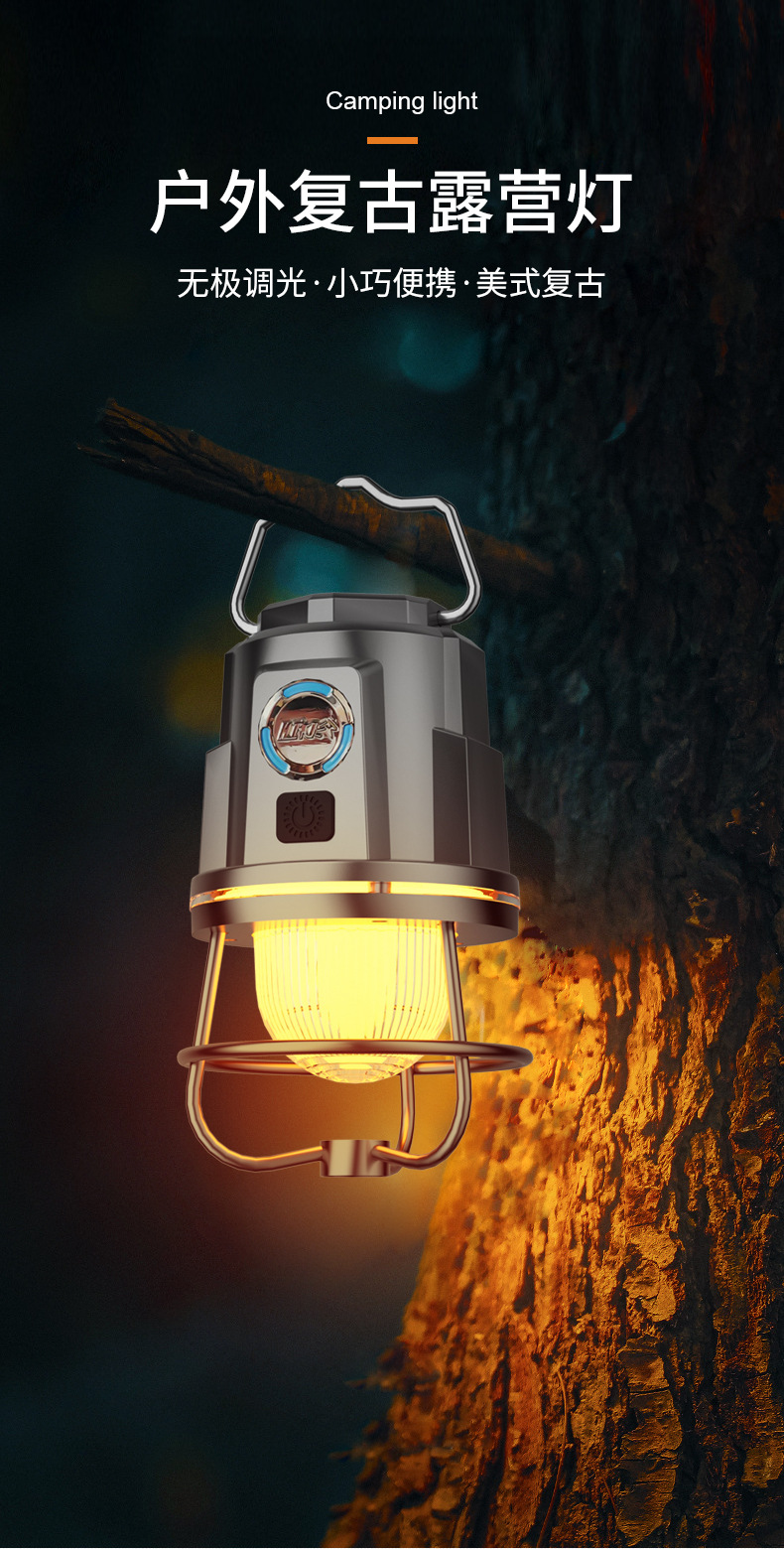 Luz de camping al aire libre transfronteriza carpa atmósfera Luz Retro camping luz LED carga campamento luz colgante