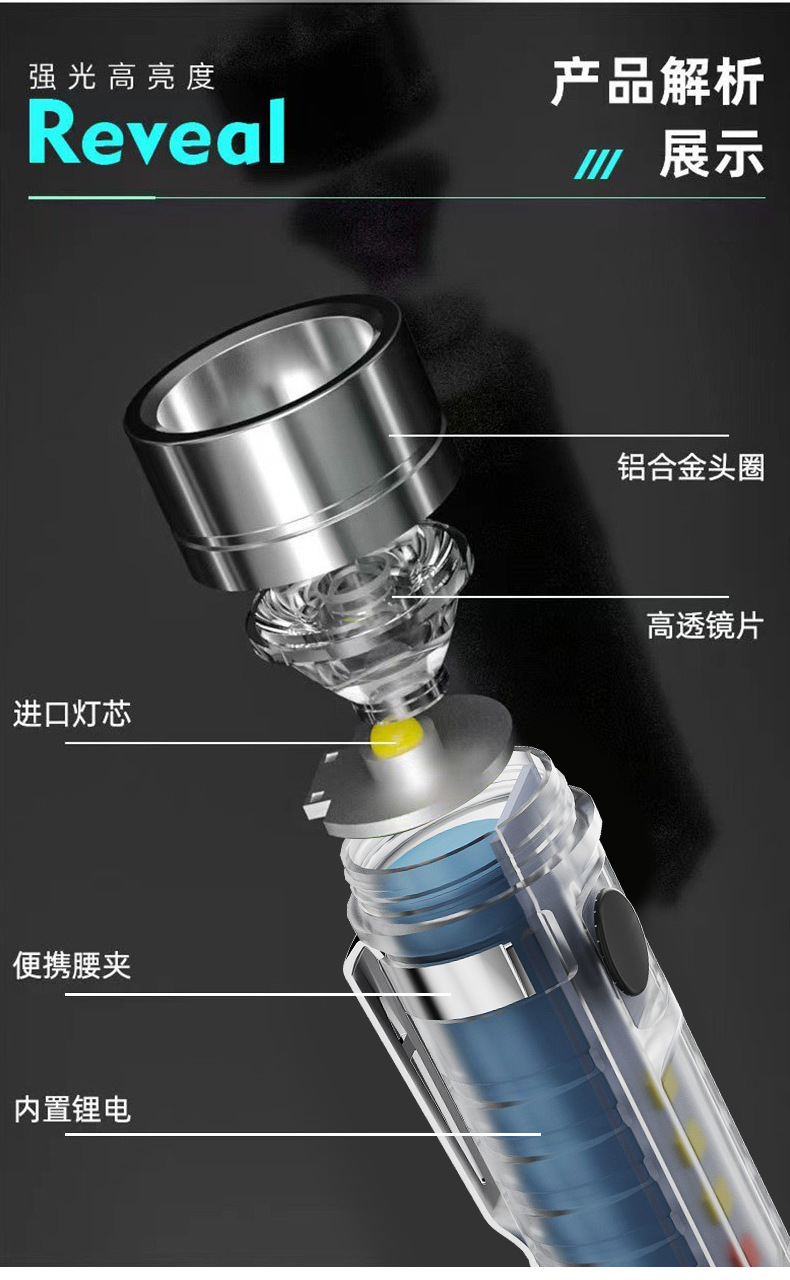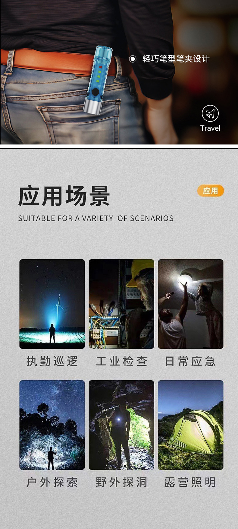 Transfronterizo nueva pequeña linterna multifuncional mini llavero luz al aire libre portátil sombrero clip luz fuente de luz de trabajo