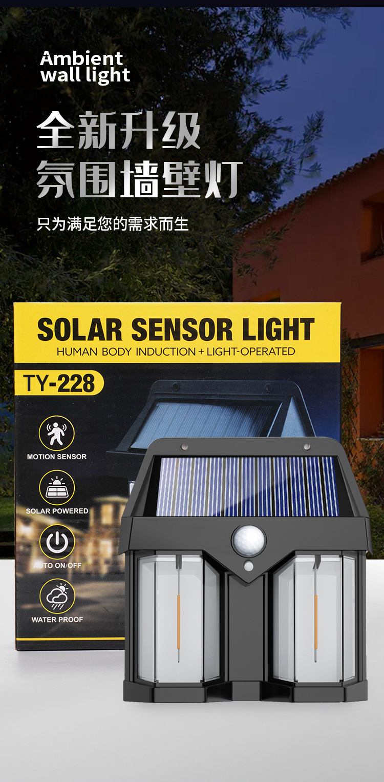 Transfronterizo nueva lámpara de pared solar al aire libre solar patio iluminación impermeable decoración del hogar atmósfera brillante Lámpara