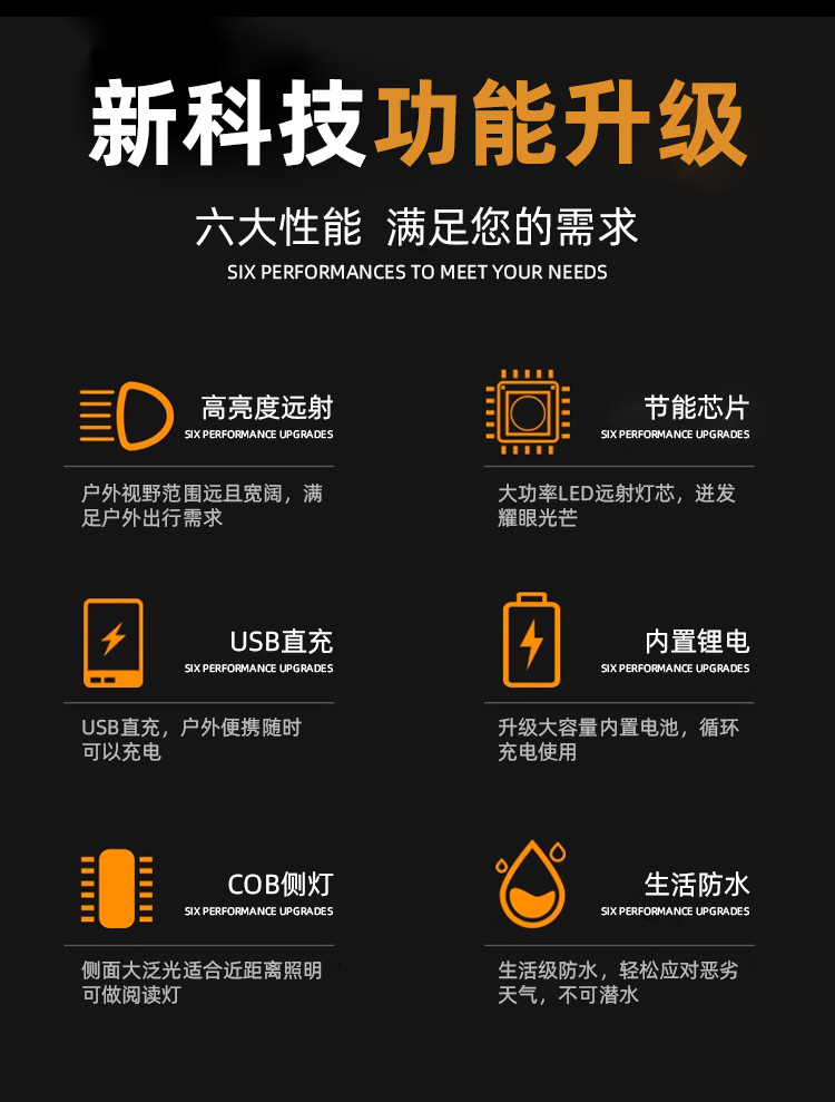 Linterna al aire libre transfronteriza resaltar luz de trabajo portátil luz lateral multifuncional luz de emergencia impermeable