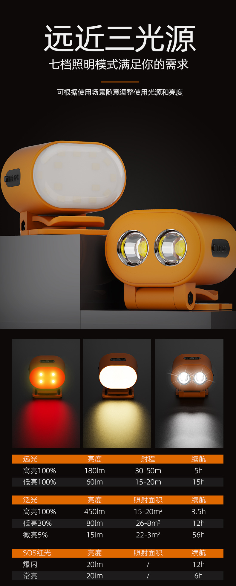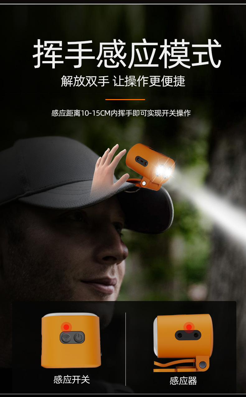 Transfronterizo nuevo faro al aire libre larga resistencia impermeable cabeza-montado lámpara de iluminación de inducción multifuncional imán luz de trabajo