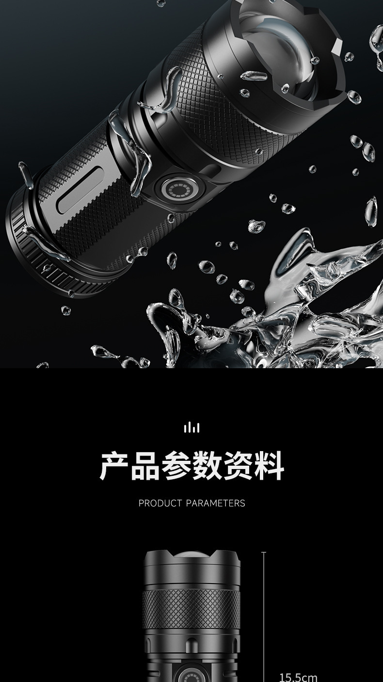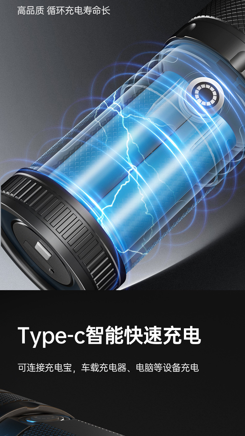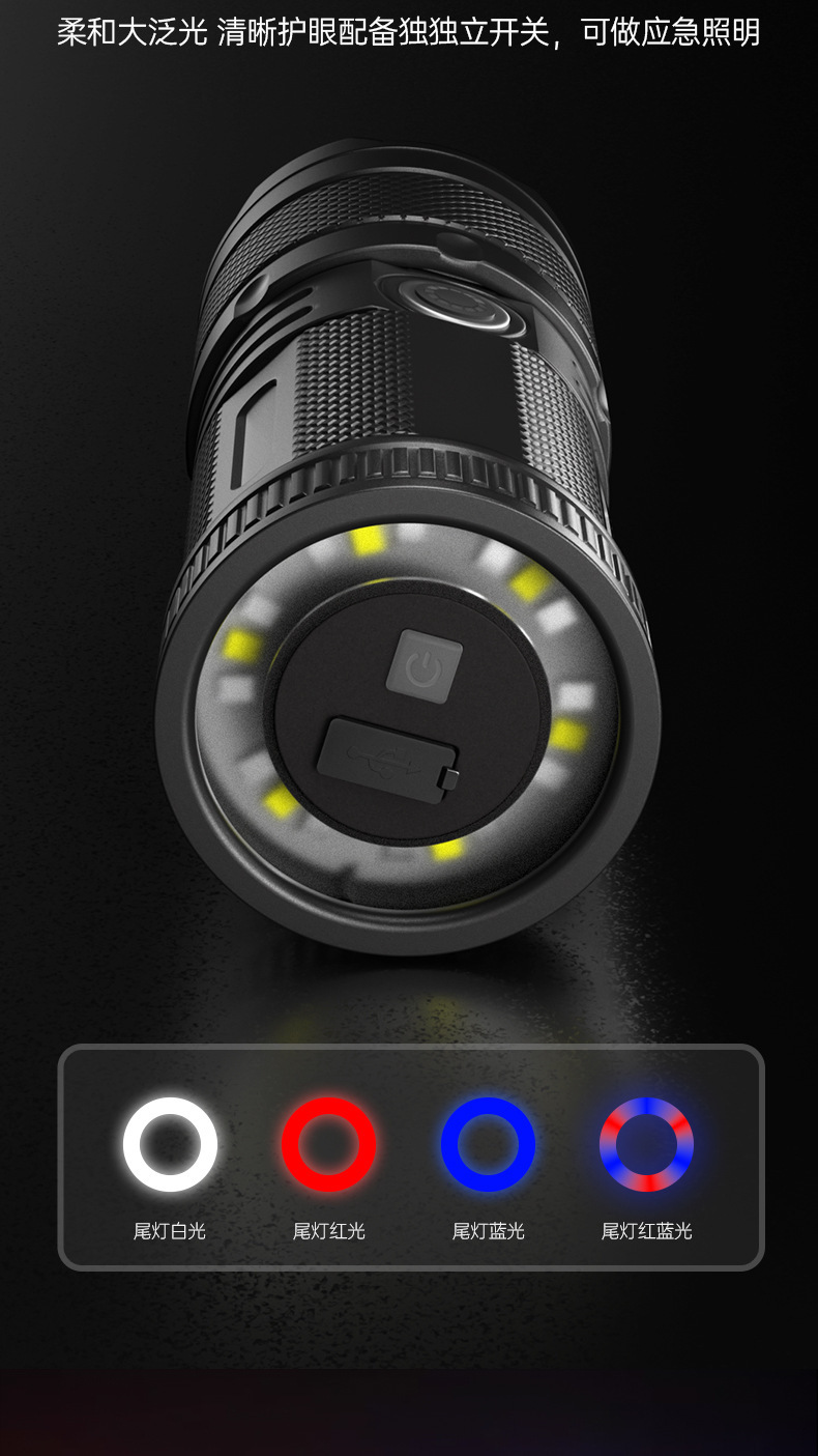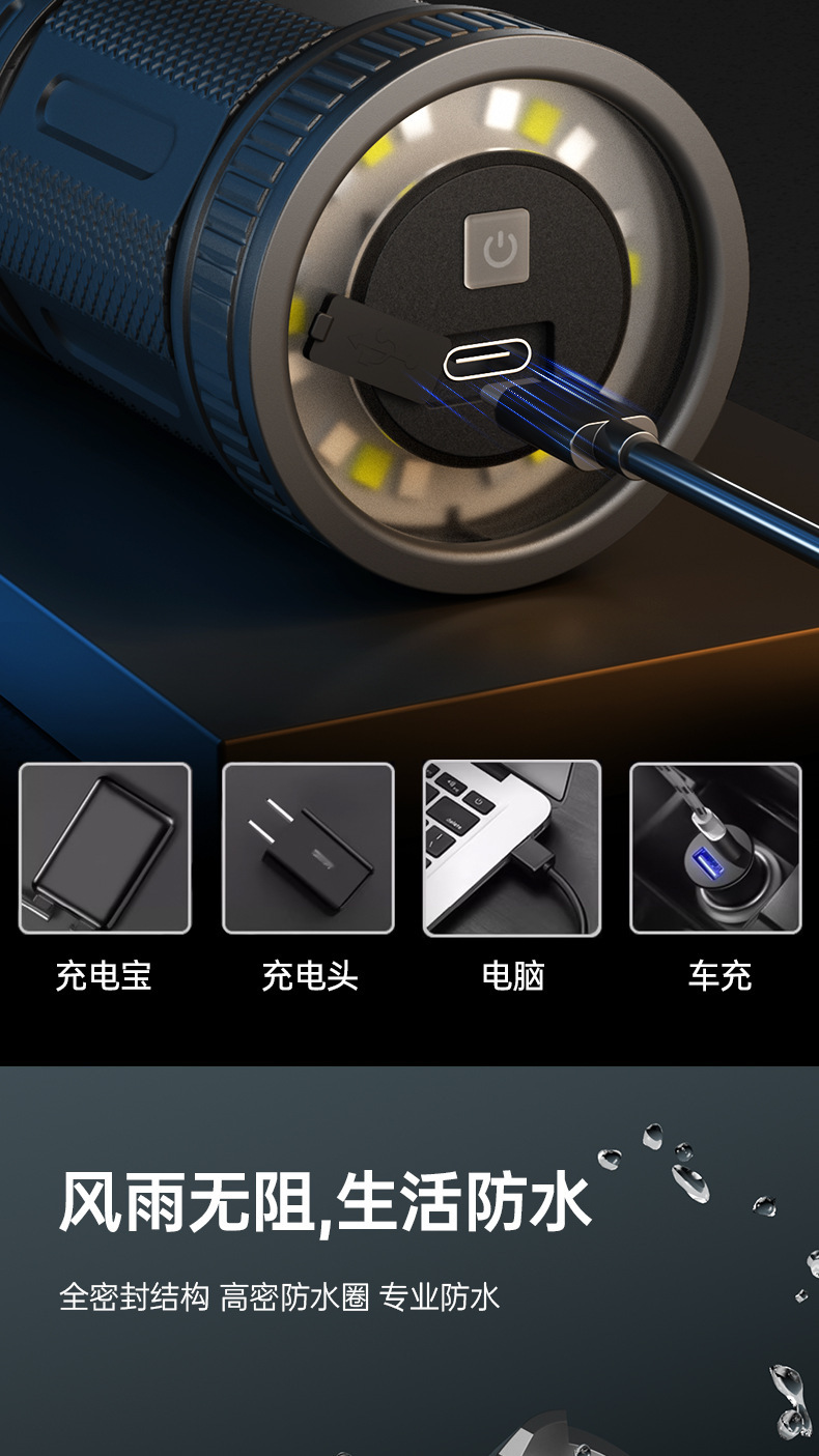 Nuevas linternas transfronterizas al aire libre multifuncional lámpara de iluminación de carga láser blanco resaltado antorcha portátil retráctil impermeable