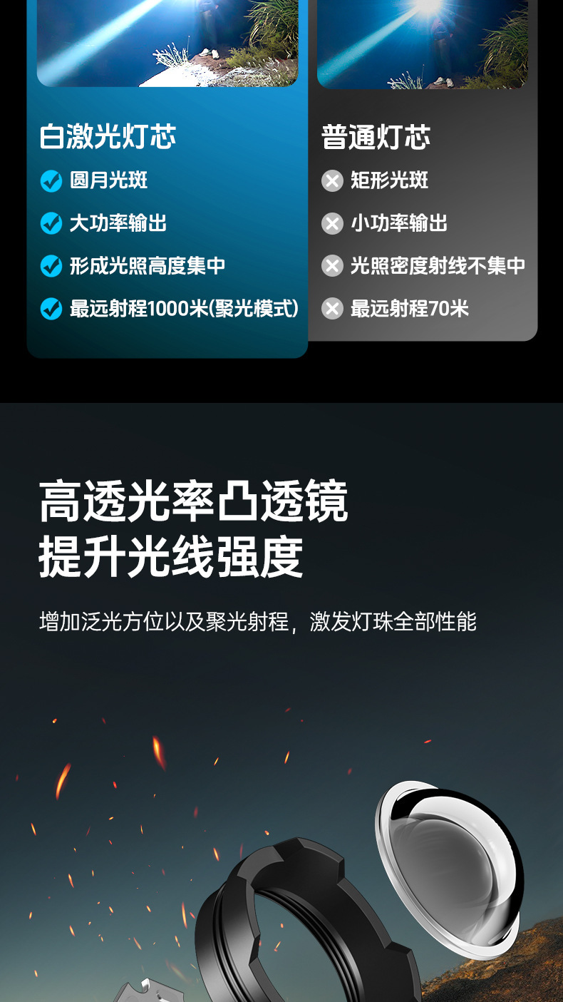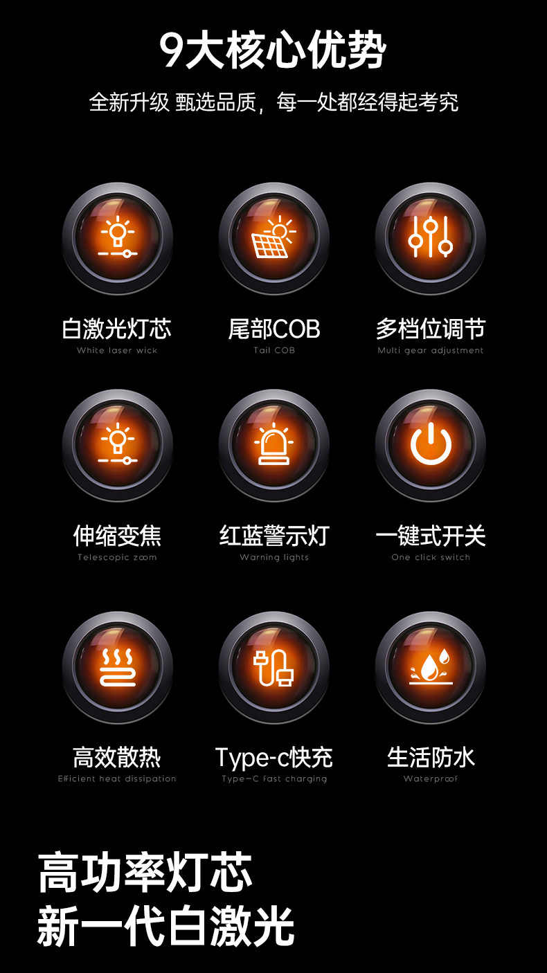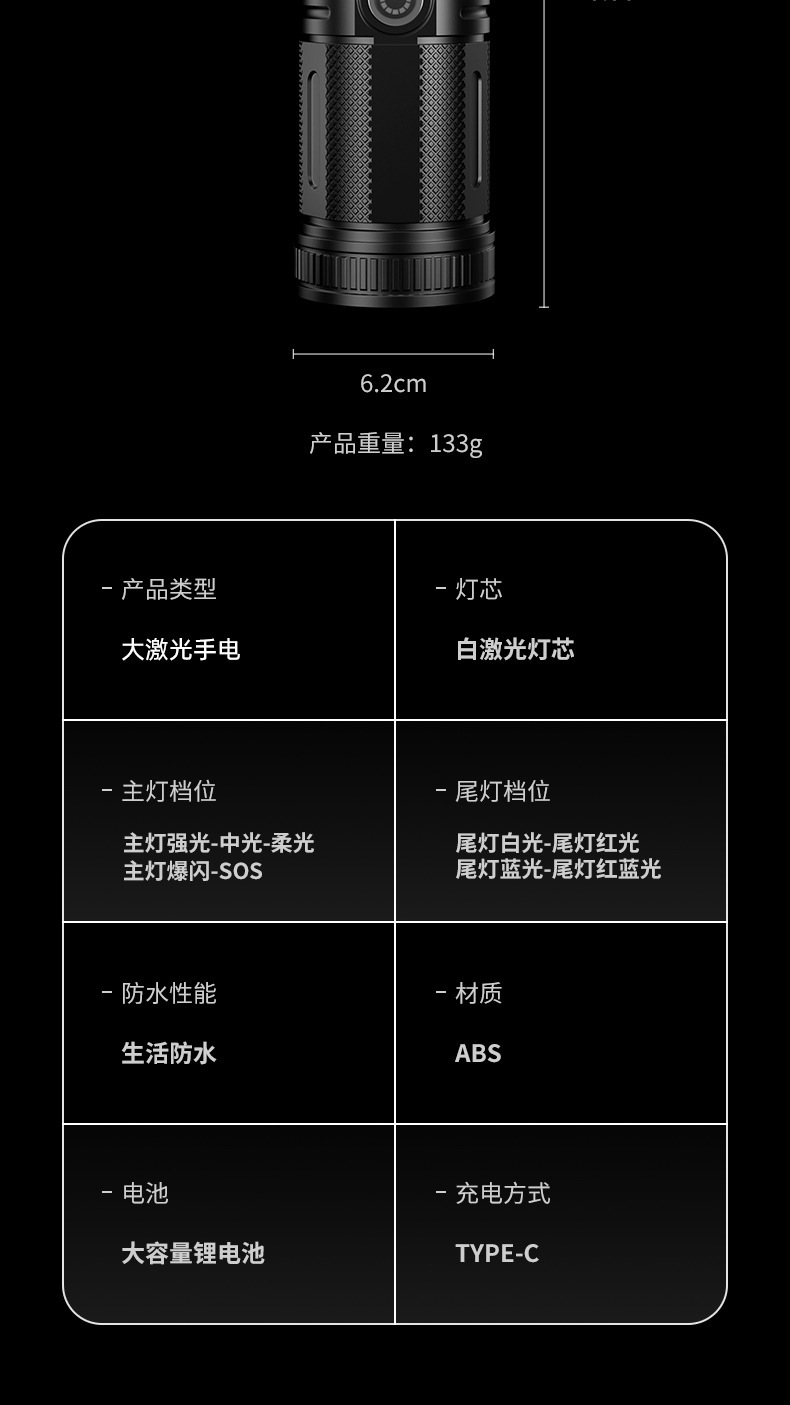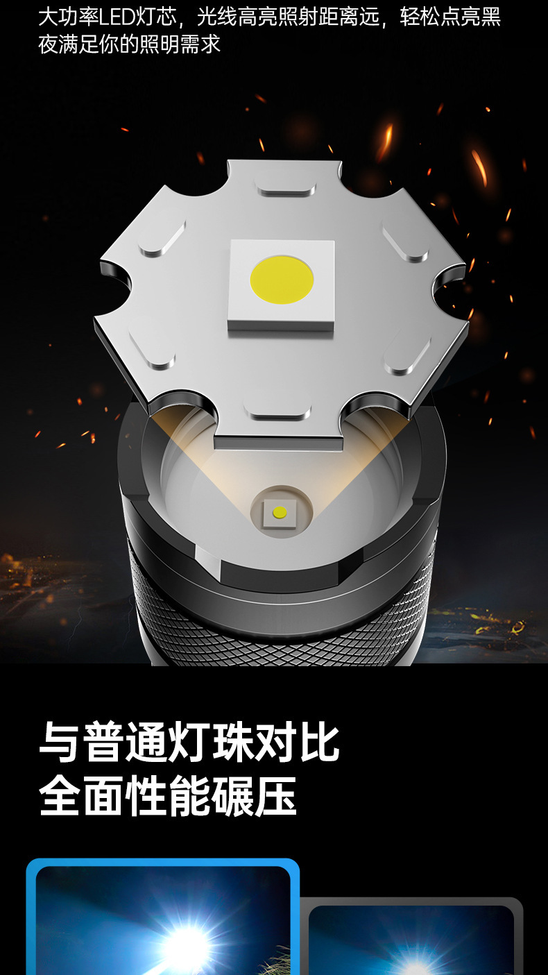 Nuevas linternas transfronterizas al aire libre multifuncional lámpara de iluminación de carga láser blanco resaltado antorcha portátil retráctil impermeable