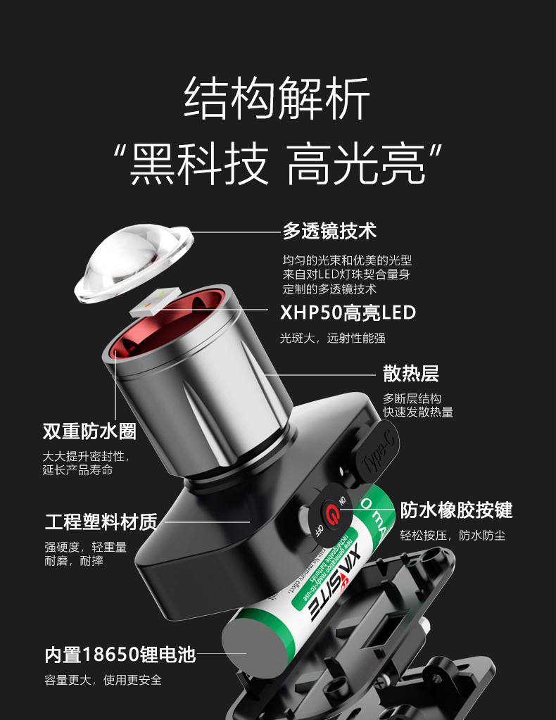 Transfronterizo nuevo faro de pesca especial recargable de larga duración tipo de luz brillante alta cabeza de pesca salvaje faro de pesca nocturna