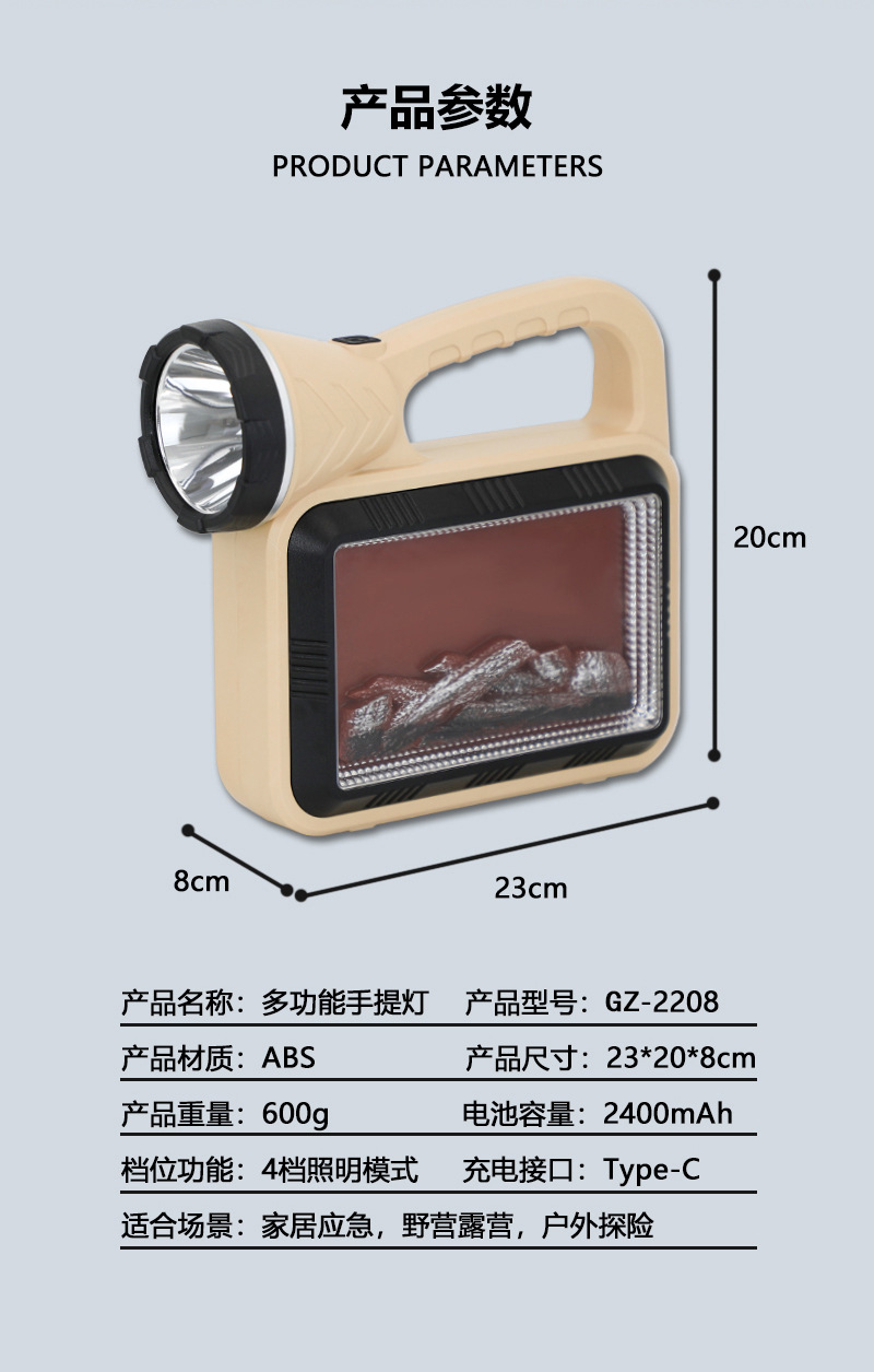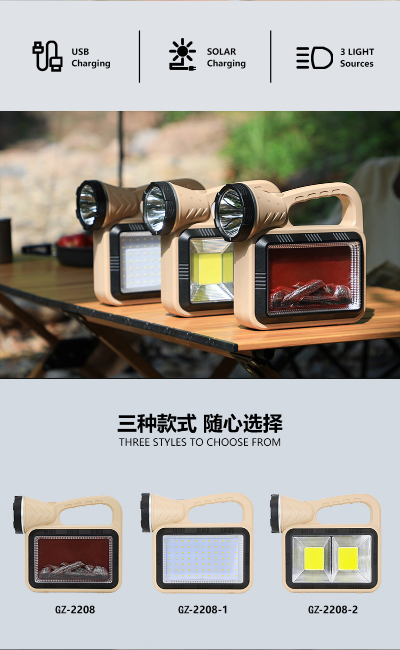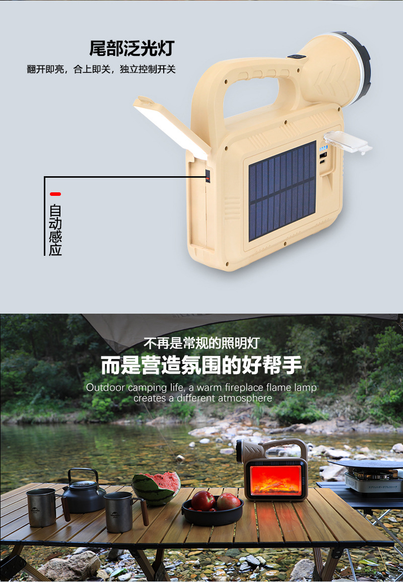 Transfronterizo nueva luz de trabajo multifuncional luz de carga LED brillante con luz de atmósfera de llama Luz de herramienta de luz fuerte portátil